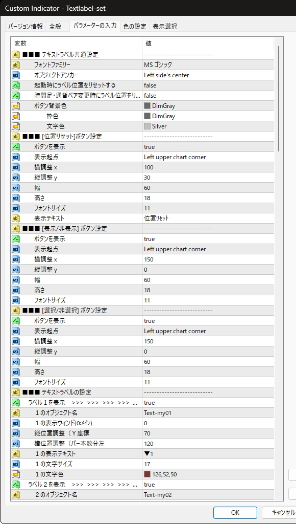 チャート上に複数のテキストラベルを設置するインジケーターです。