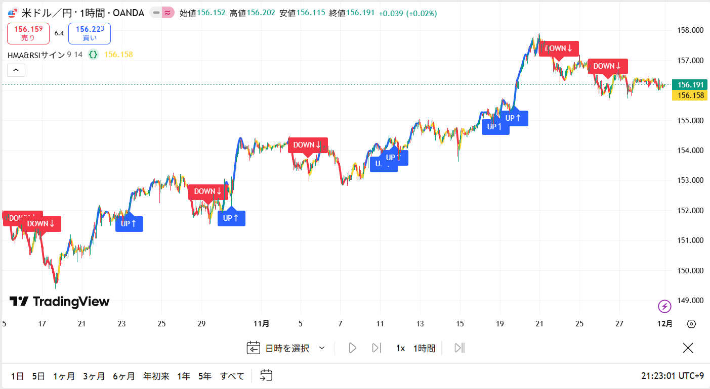 HMAとRSIの組み合わせでトレンドを把握。