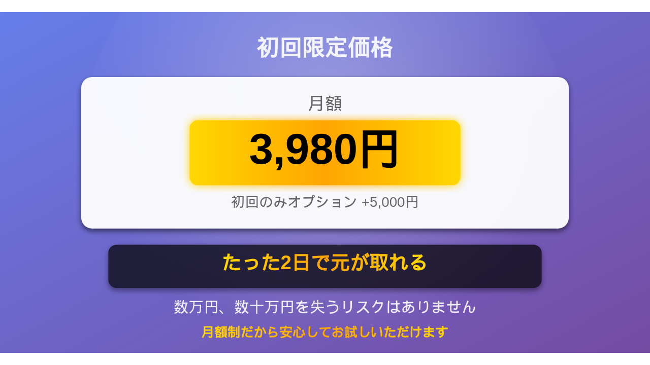 たった4,000円を、2日くらいで元をとってしまえば、もうリスクはゼロです。
