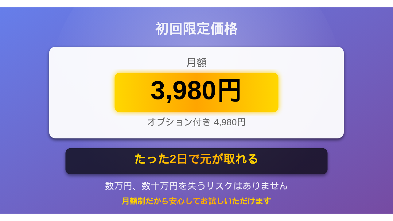 たった4,000円を、2日くらいで元をとってしまえば、もうリスクはゼロです。