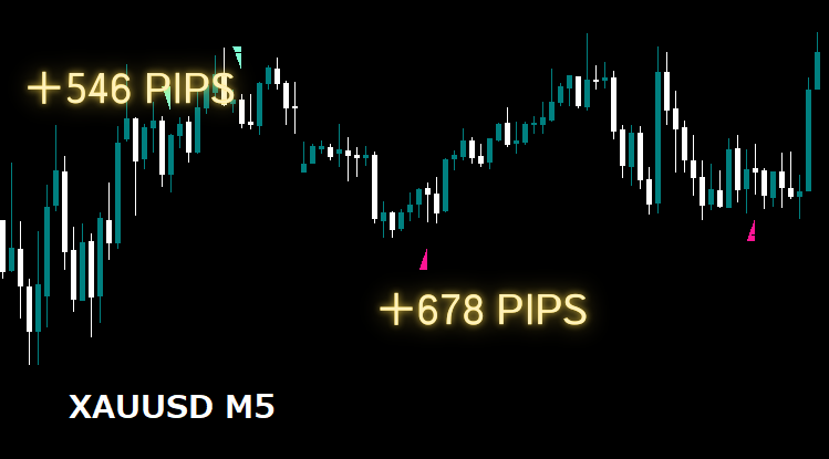 一瞬の動きが激しいゴールド相場でも、可能です。 “勢い+ブレイク”をセットで捉えることで、より精度の高いサインを実現しています📈 チャート上には、 💖 ピンクの上向き三角=買いサイン 💎 アクアマリンの下向き三角=売りサイン が自動で描画され、ひと目でトレンド転換を確認可能!