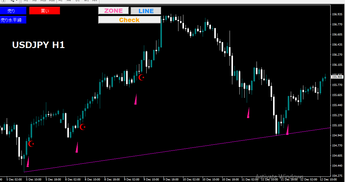 | 「買い水平線」描写機能 | 直近高値にTP 直近安値にSLを描写 |