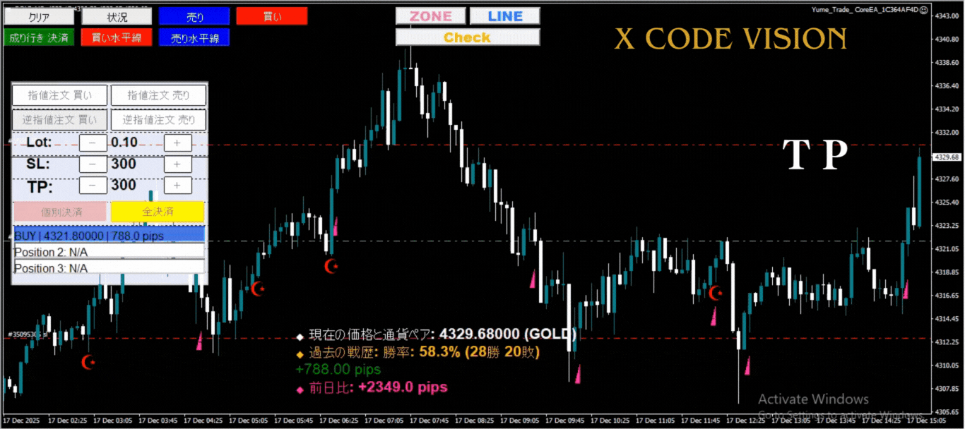 ゴールド対応の新作インジケーターが誕生🔥 その名も―― X CODE VISION(エックスコードビジョン)💰✨※初期設定ではゴールドに最適化されていますが、パラメーターの変更で全ての通貨ペアでご利用頂けます。