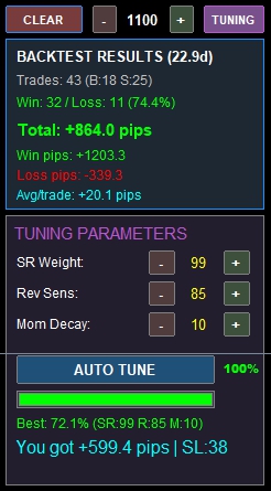 - ③AUTO TUNEを押す 最適設定を探索(数十秒)←ここで出たBest設定が最新バーから自動的に適用されます!