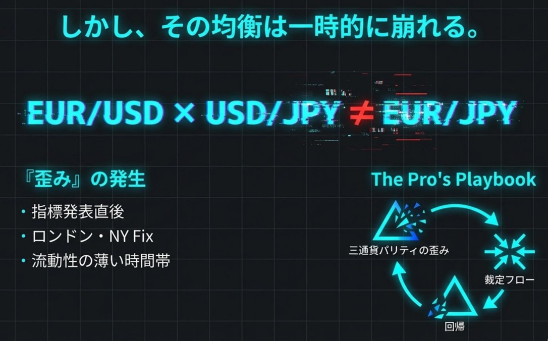 「チャートの形」ではなく、レート同士の整合性が崩れている瞬間=歪みを観測するための“モニター”です。