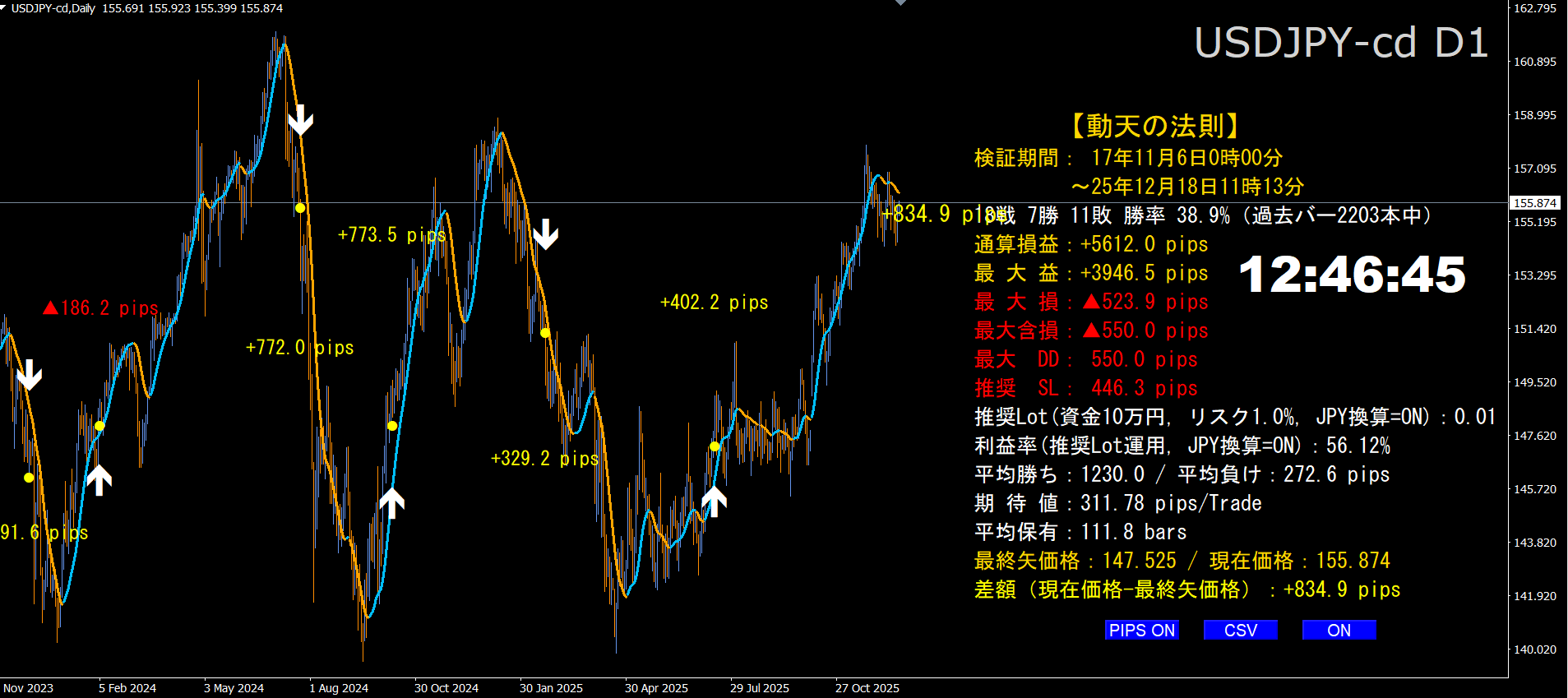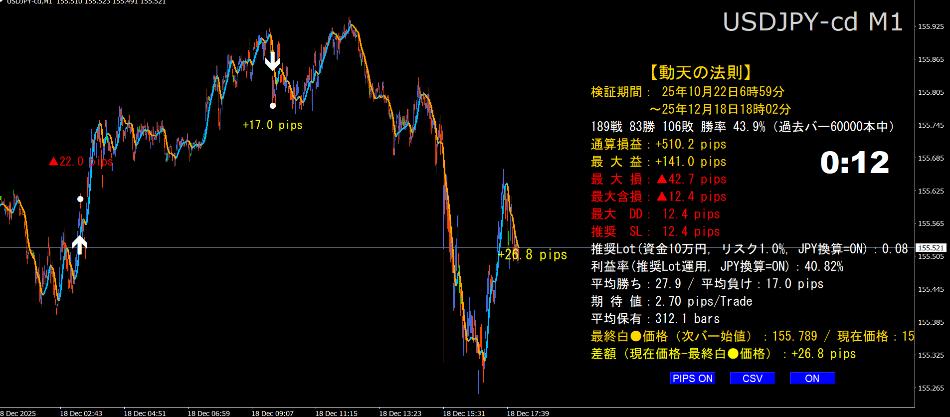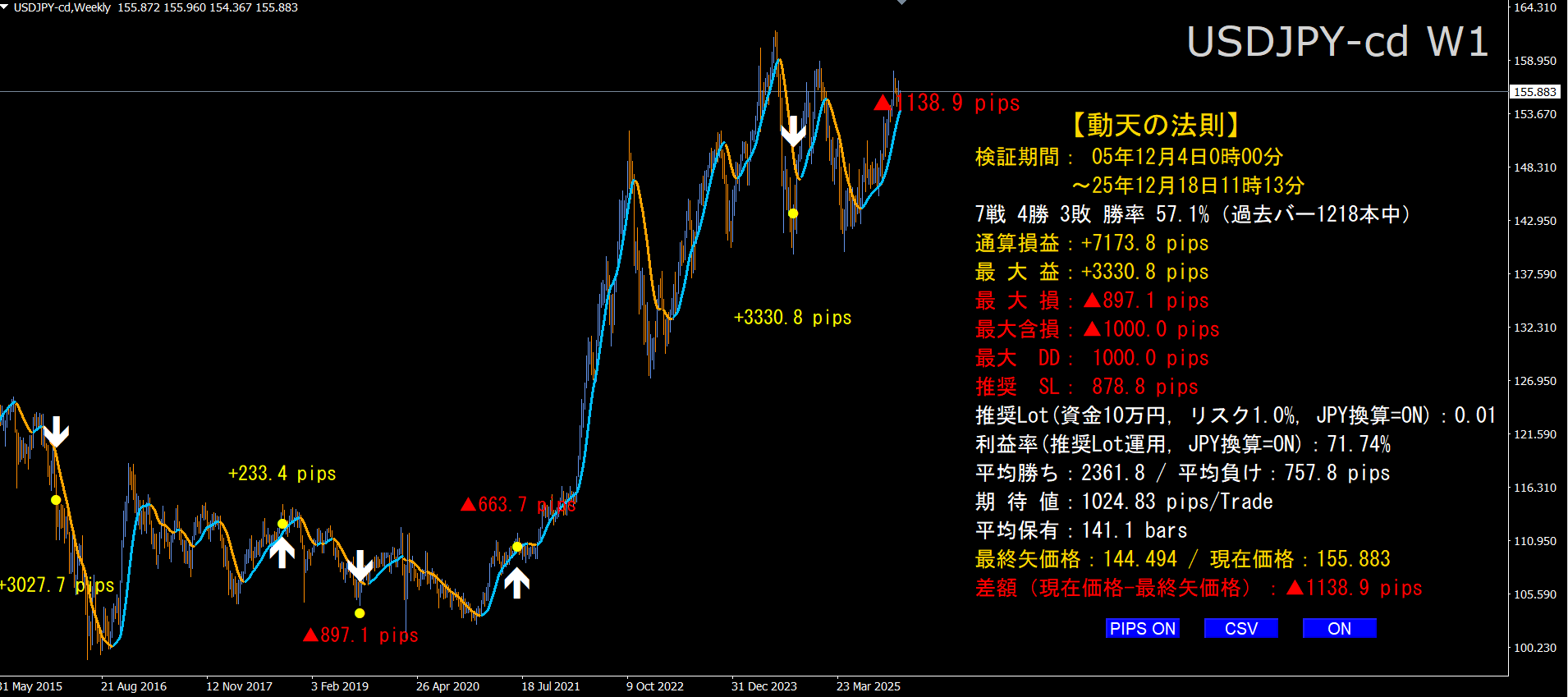 臨界点を捉える【動天の法則】★ドル円+他通貨★過去とリアル矢印が完全一致★バックテストデータ出力機能付!