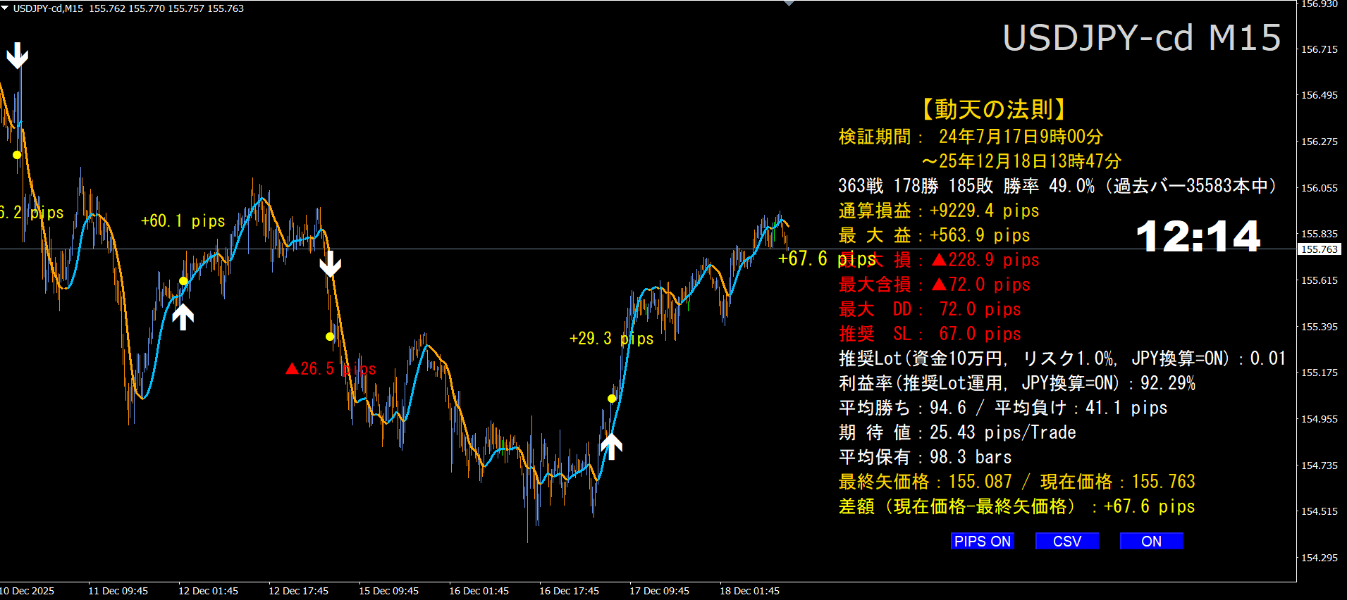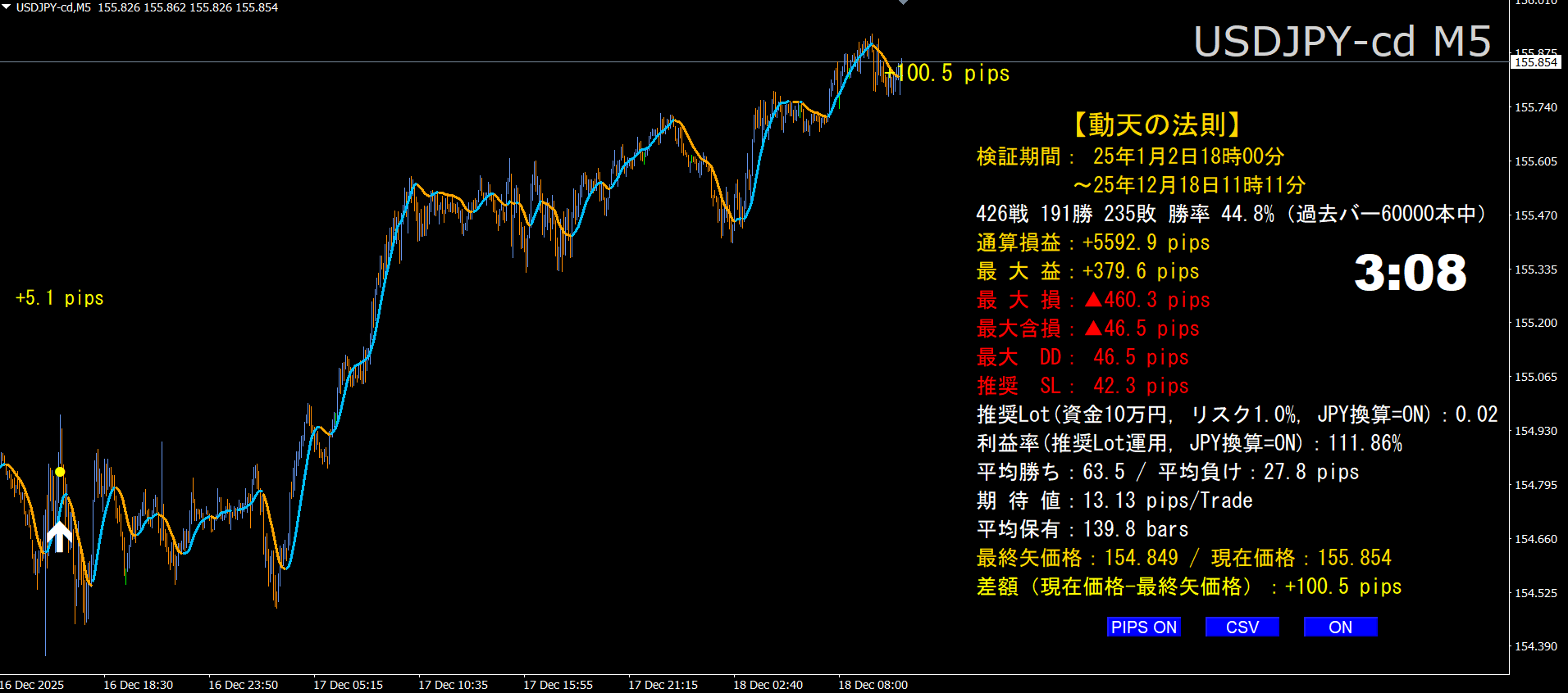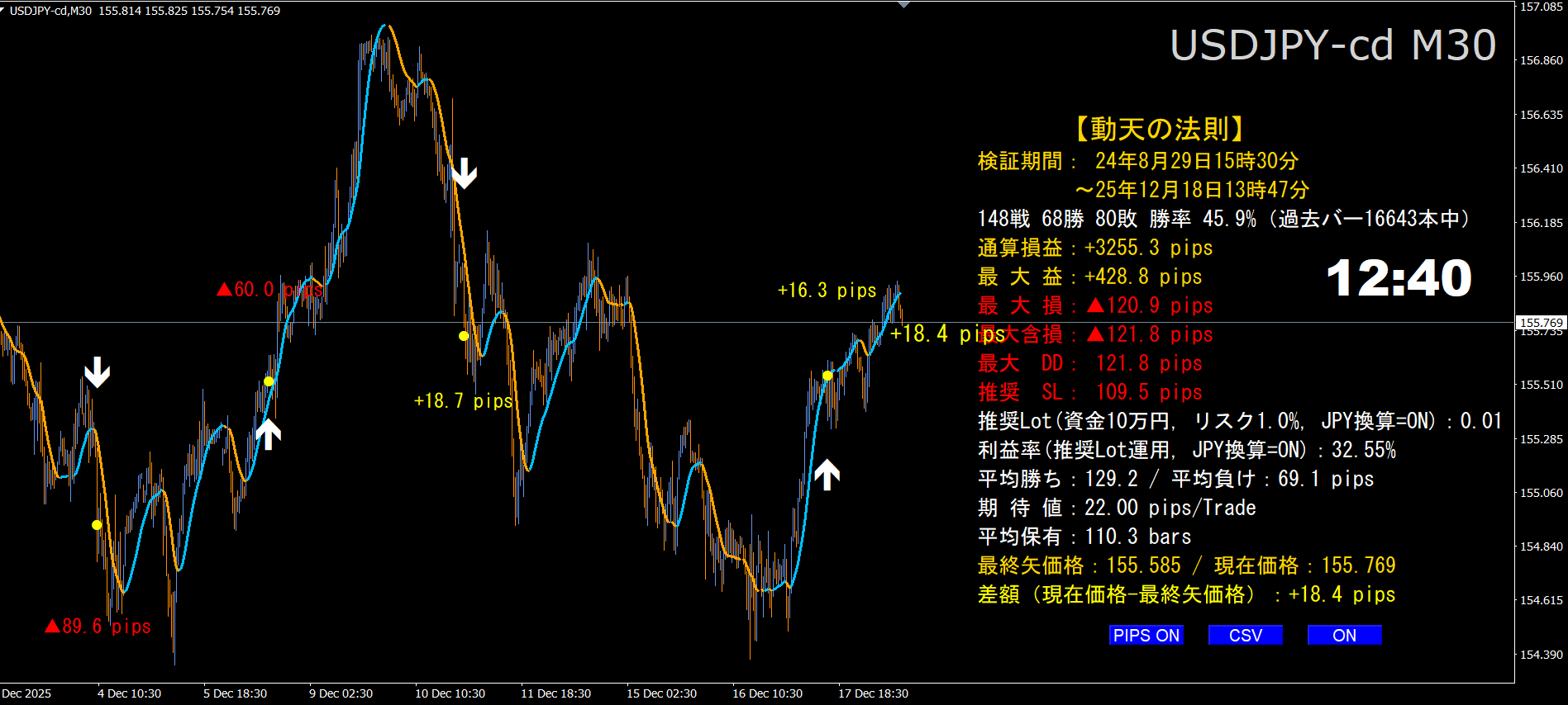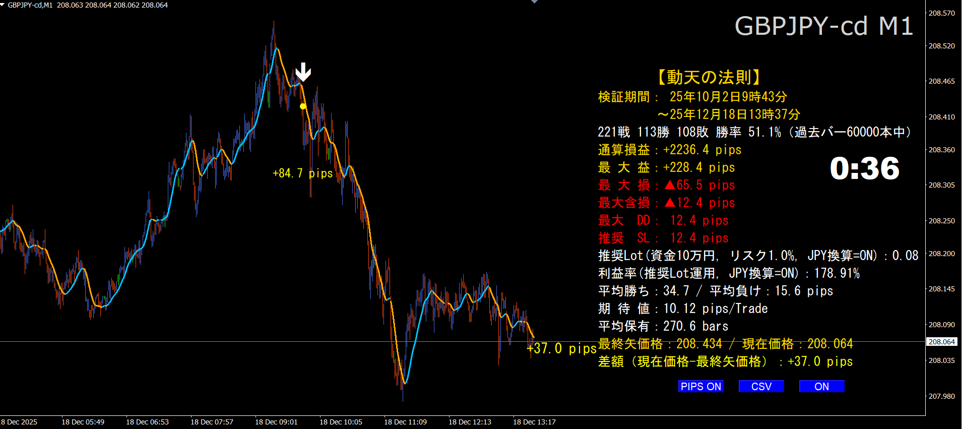 臨界点を捉える【動天の法則】★ドル円+他通貨★過去とリアル矢印が完全一致★バックテストデータ出力機能付!