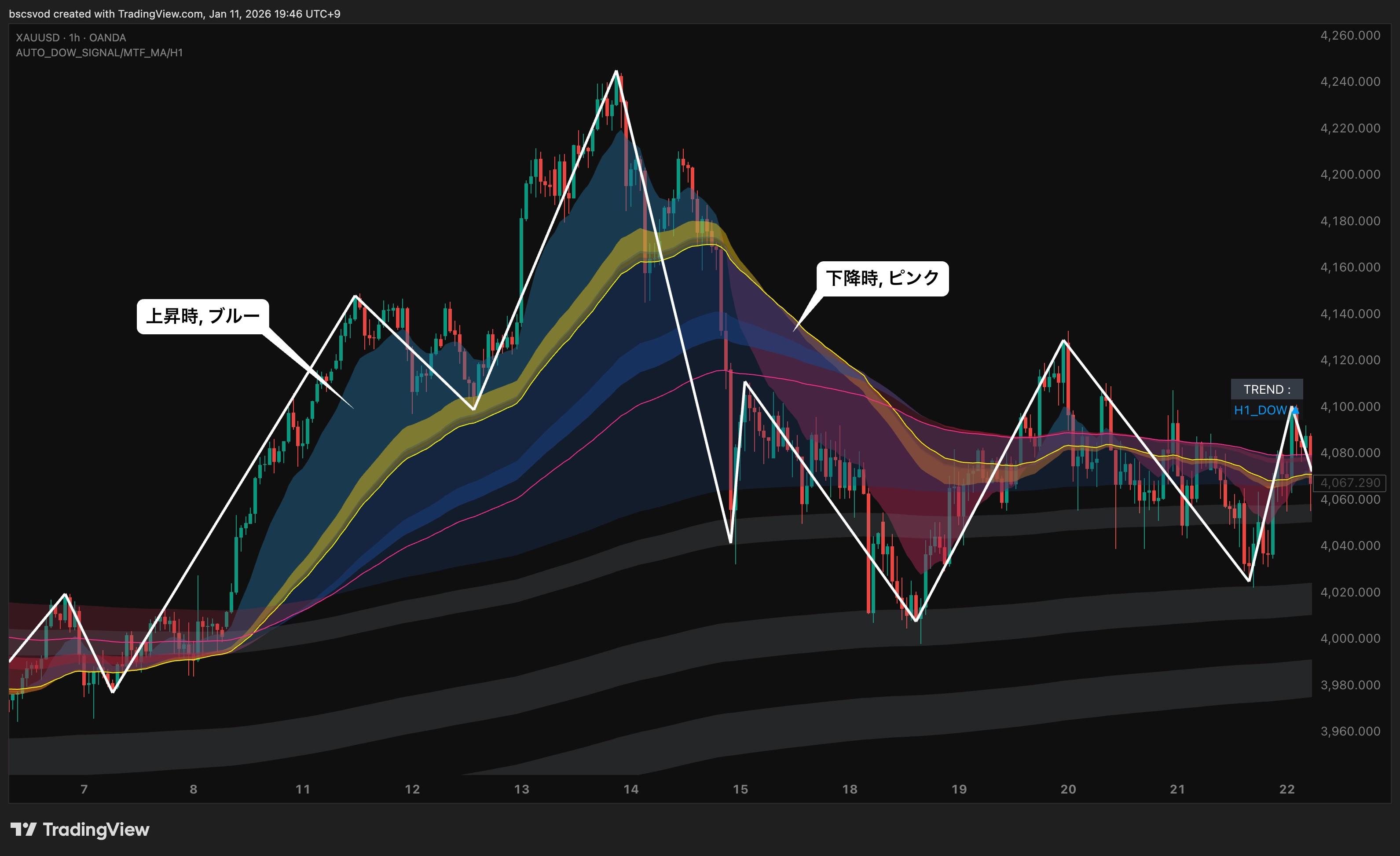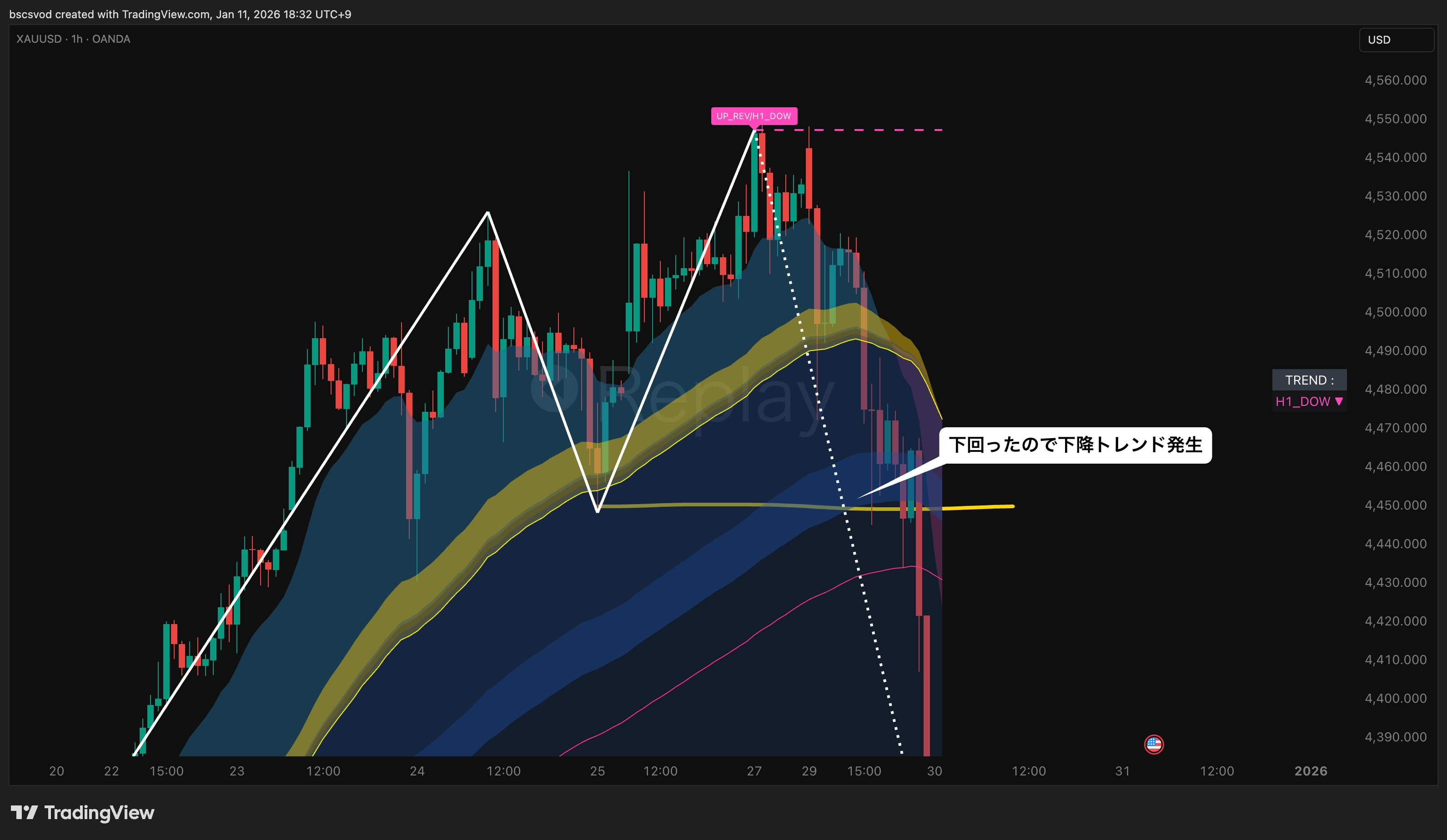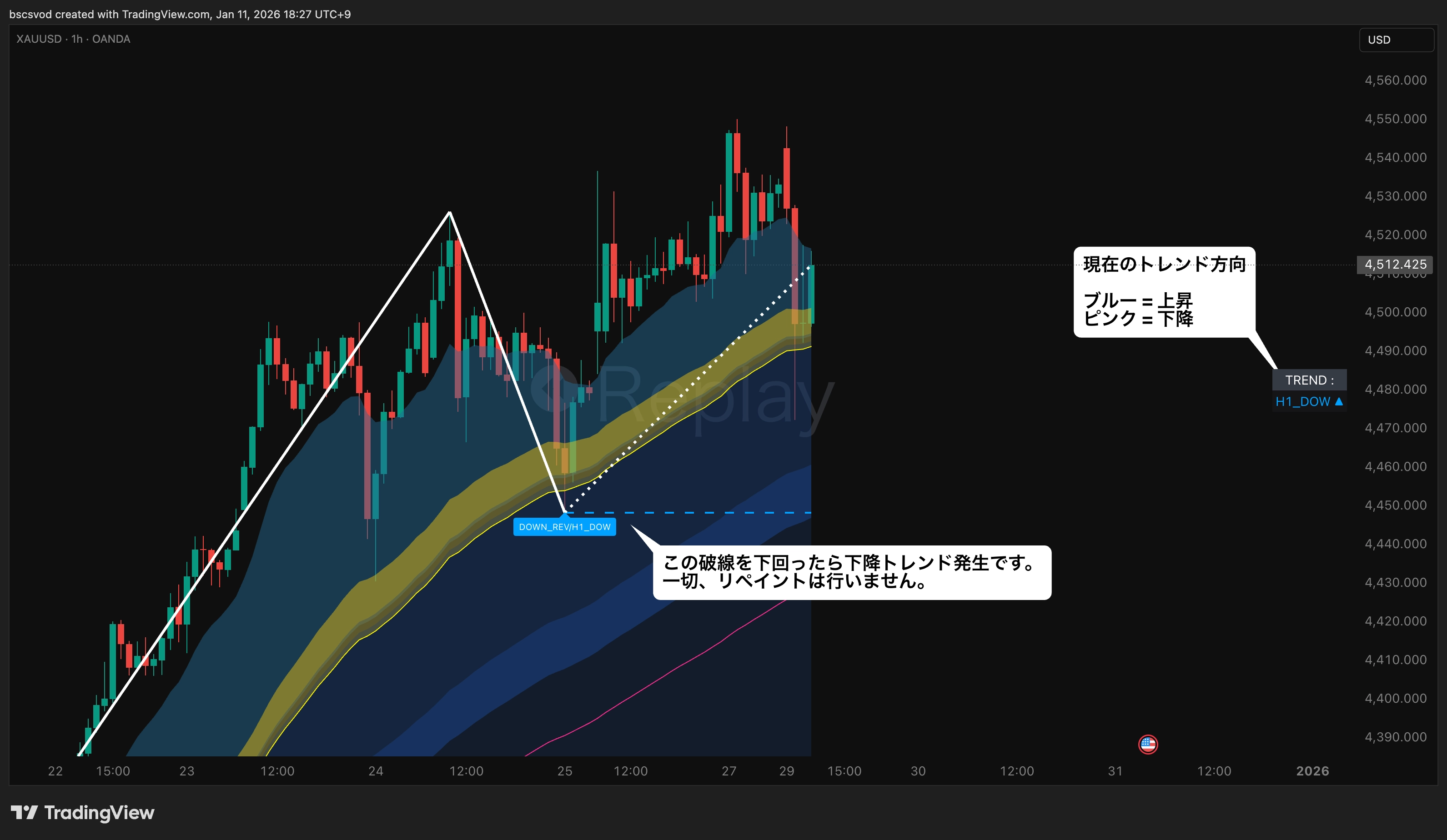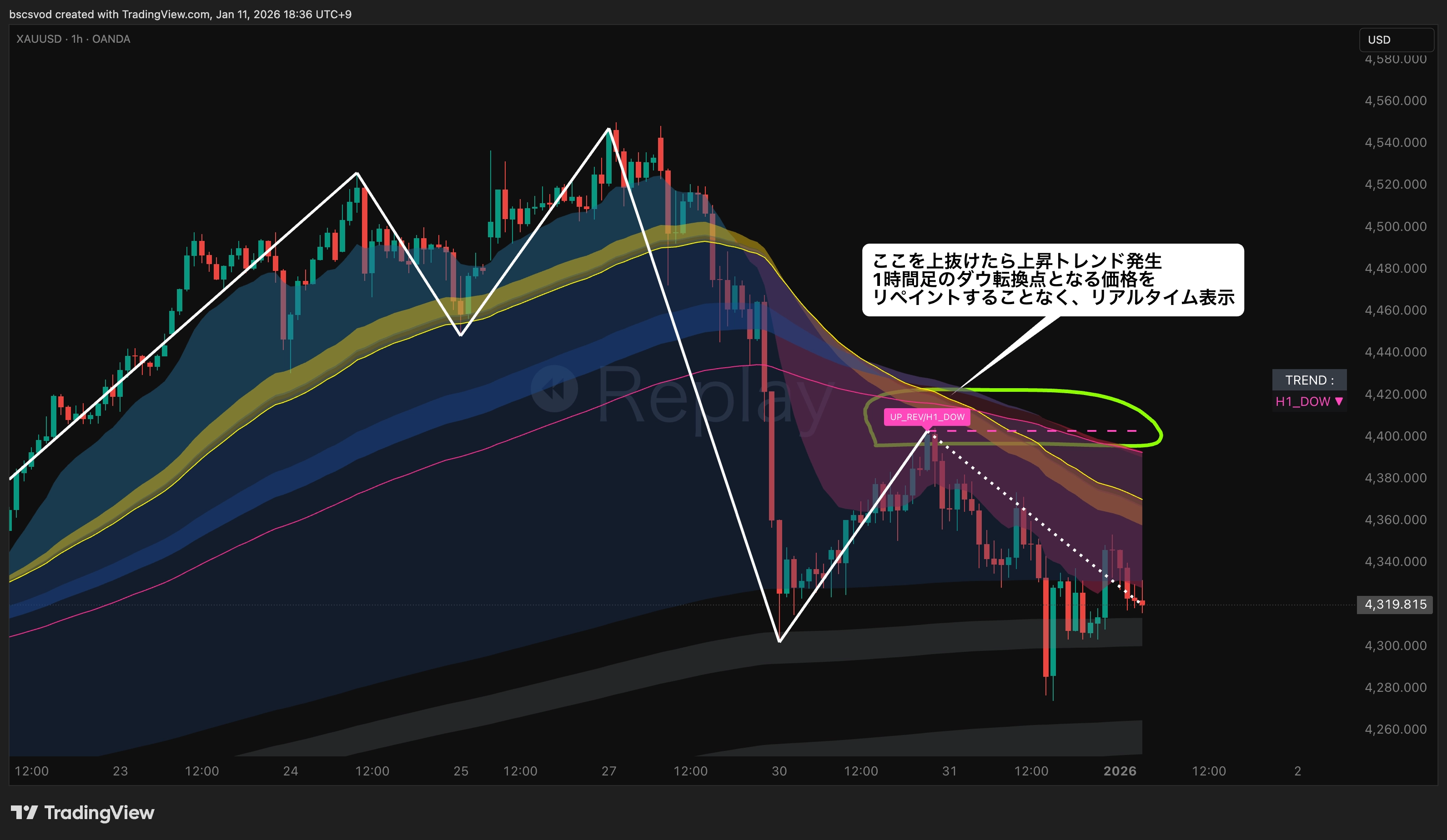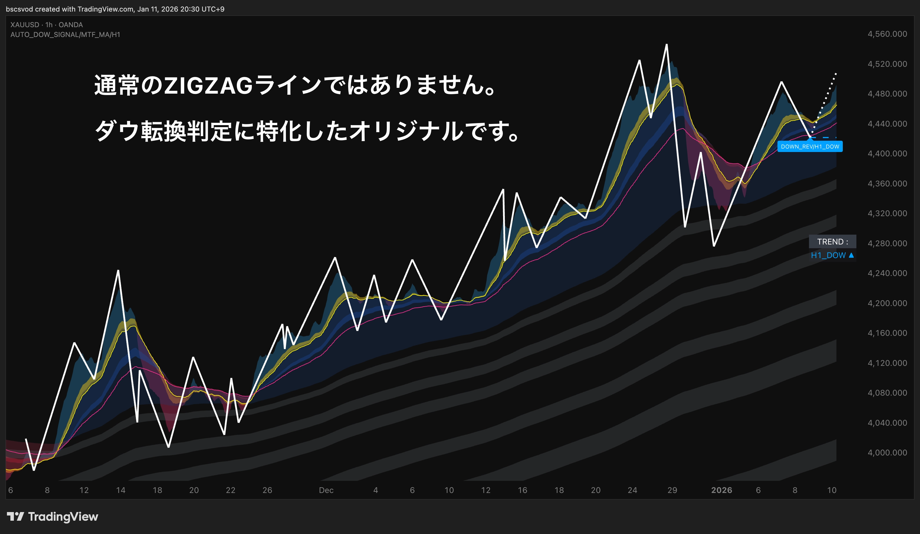 【TradingView 】ダウ転換 リバーサル判定サイン | トレンド方向 & トレンド転換点となる価格帯を自動描画
