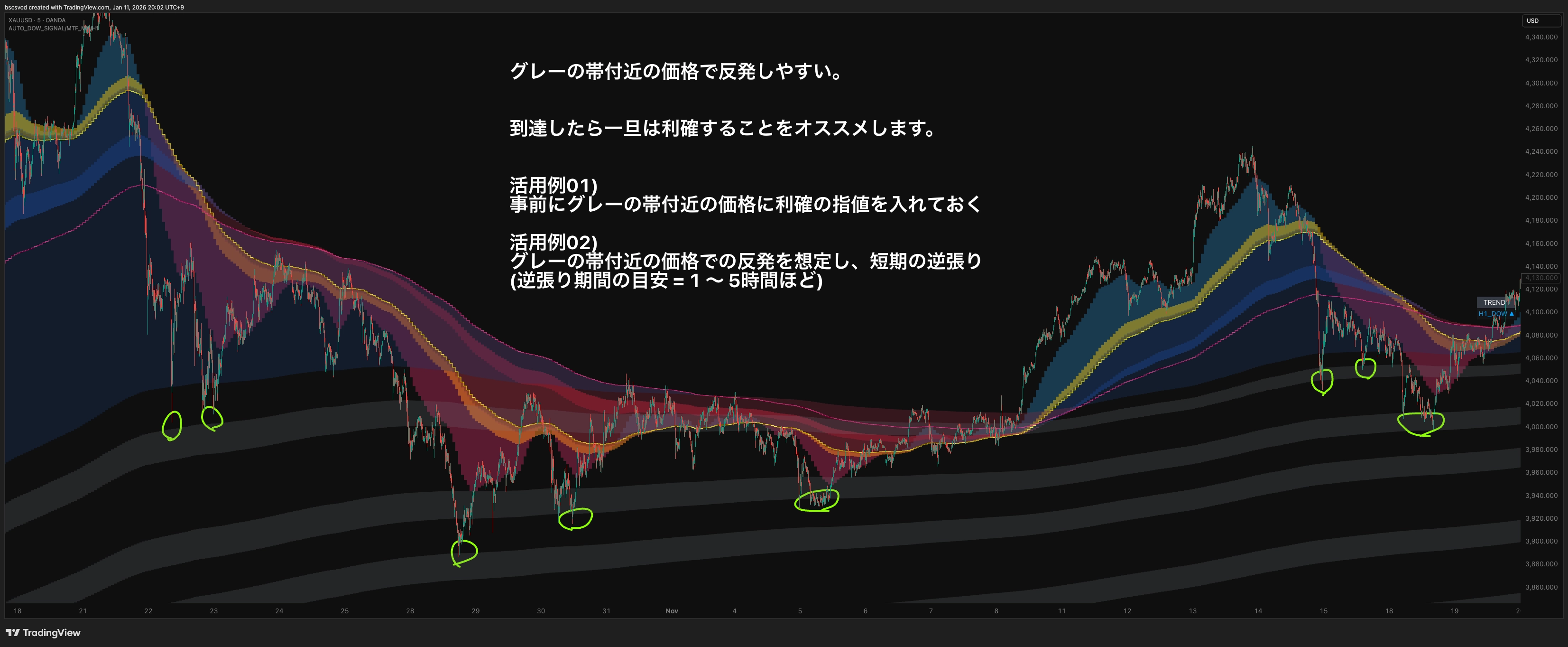 ( ※現在 MT4,MT5版を開発中です。 また当インジケーターは無料版のTradingViewでもお使い頂けます。)