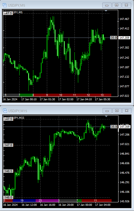 「縦横のグリッドライン」及び「日本時間(時間帯毎に色分け)」を表示する 裁量トレード補助用のプログラムです。