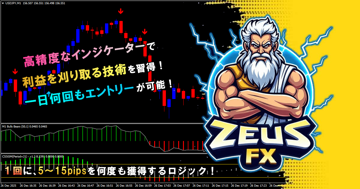 ZEUSのFXロジック 高精度なサインツールで為替相場から5~15pipsを幾度も獲得するスキャルピング手法