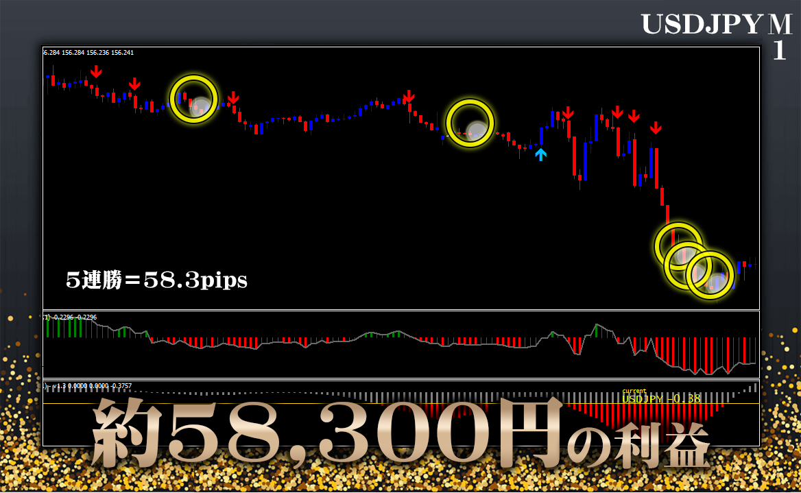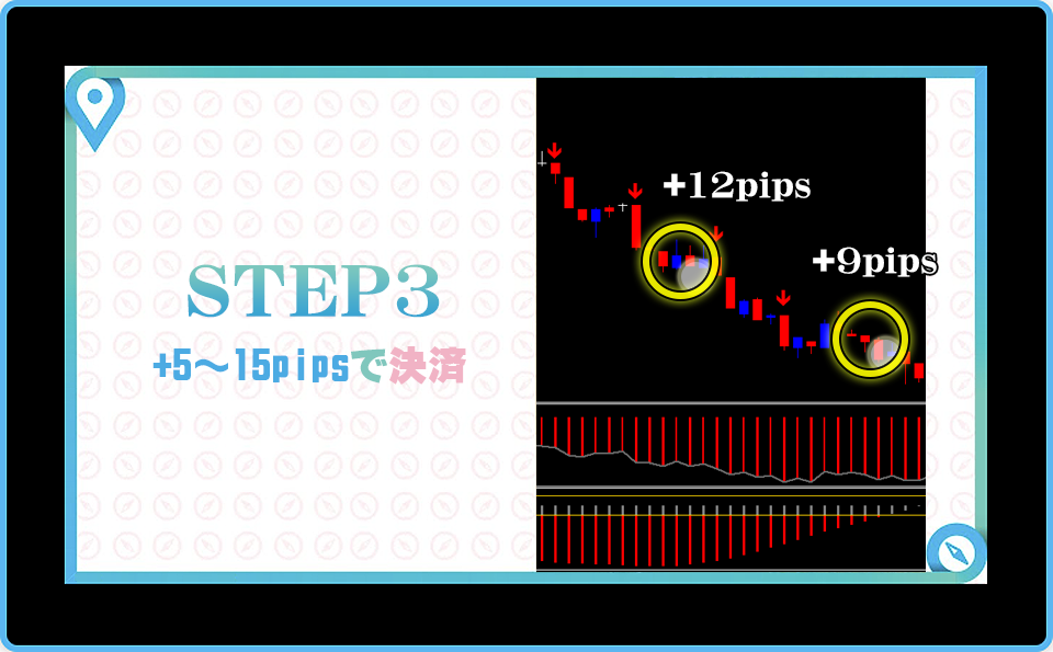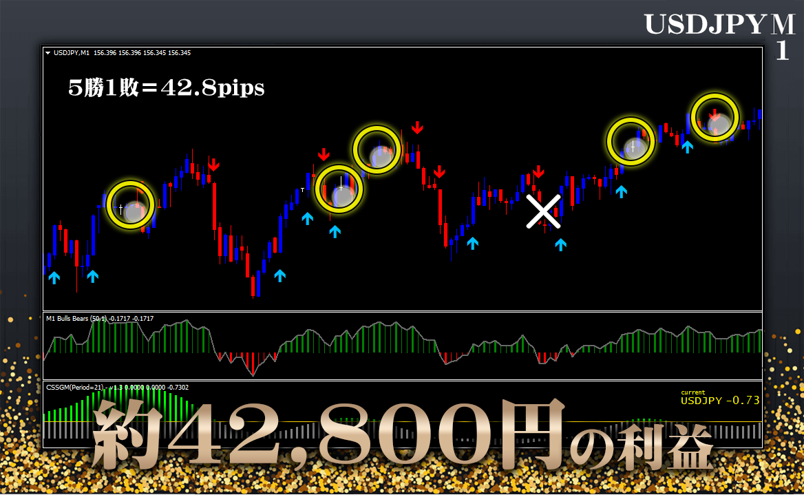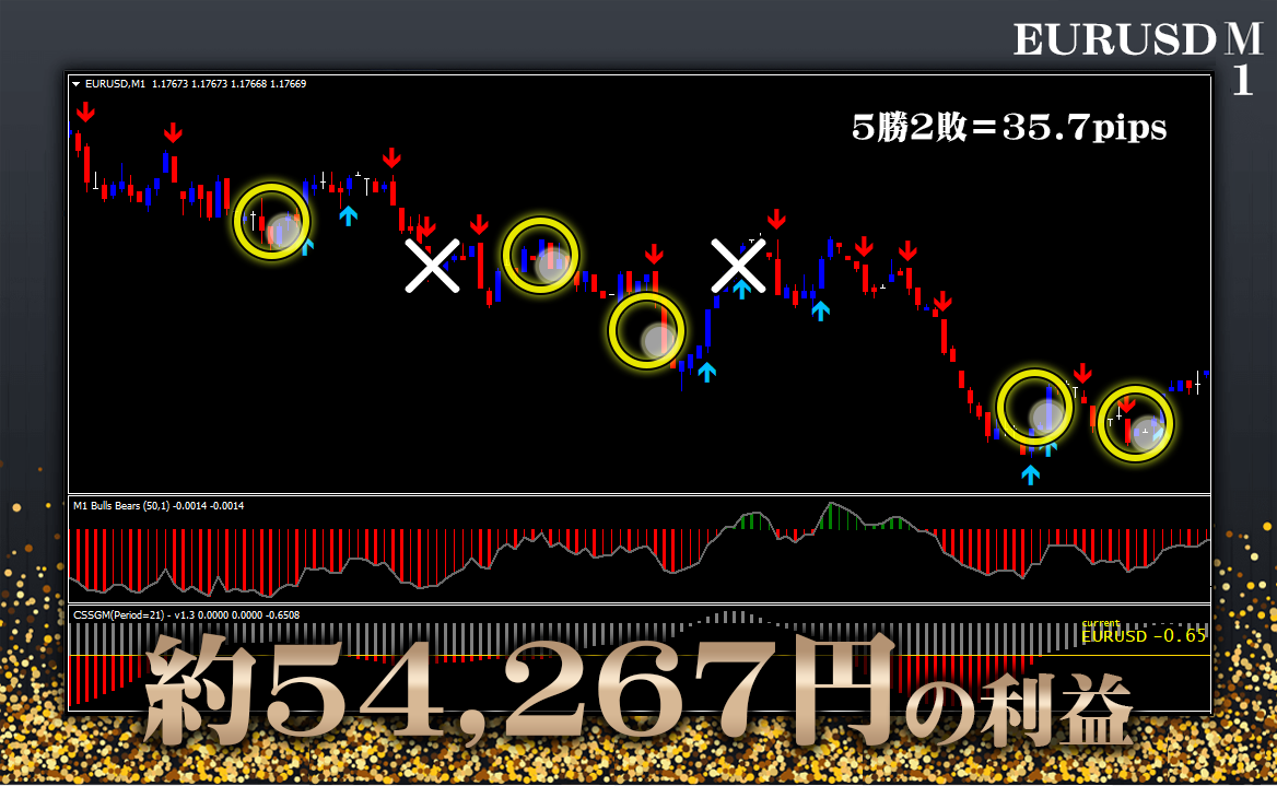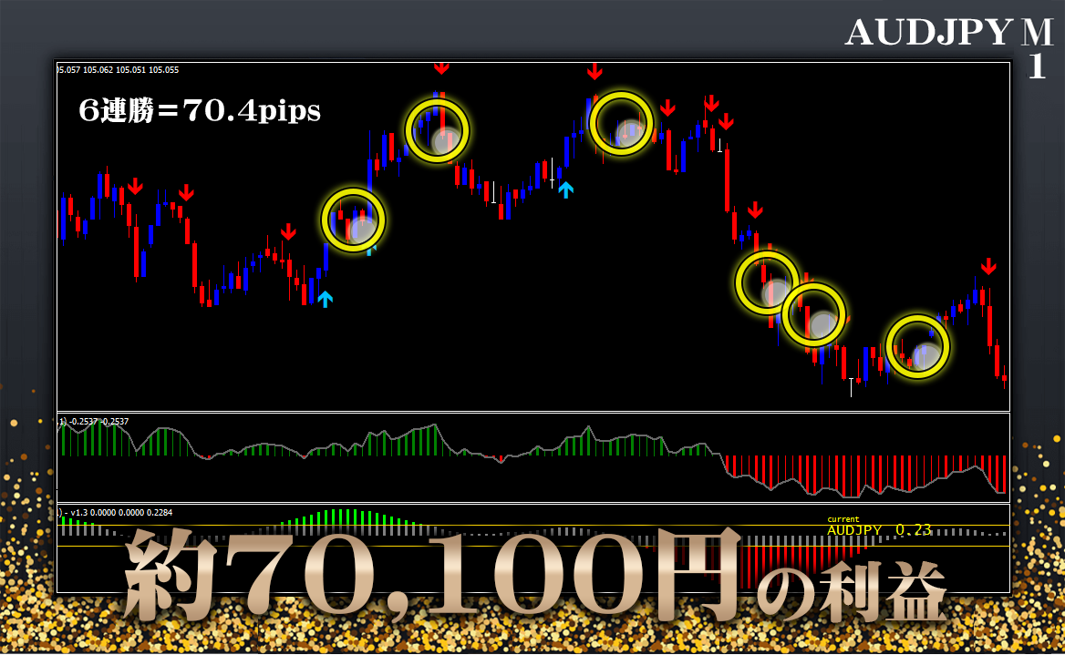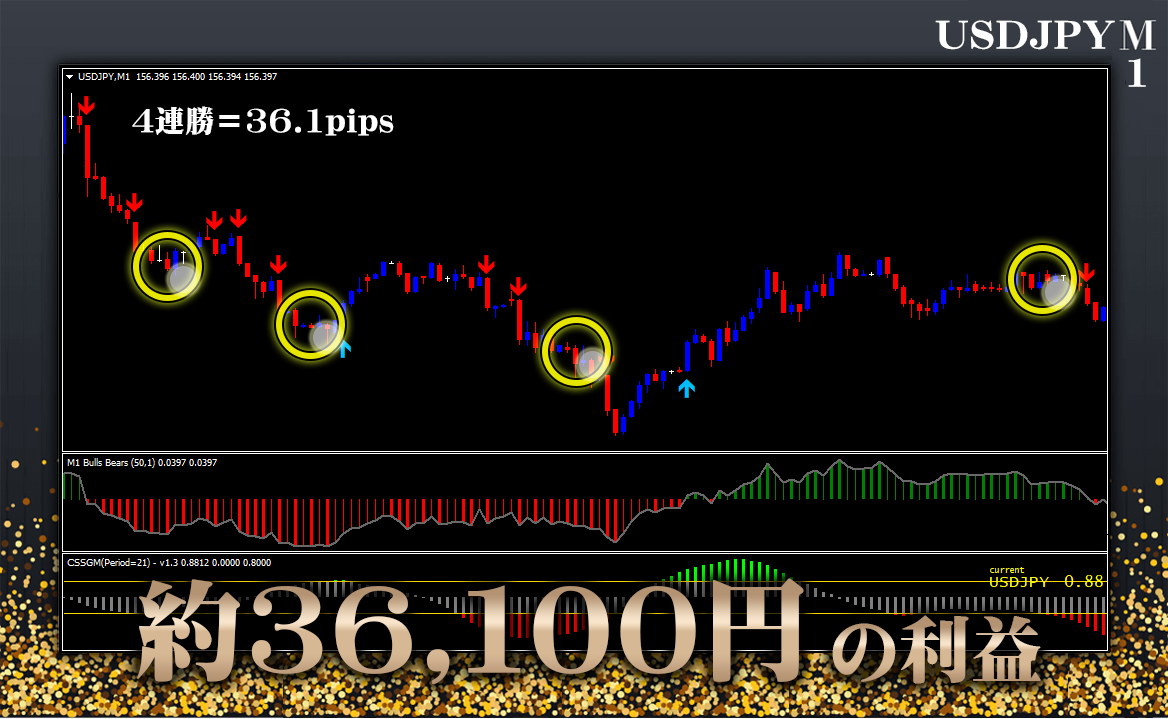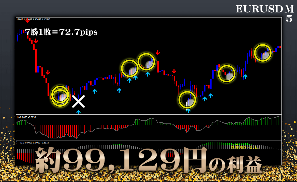 高精度なインジケーターで利益を何度も刈り取る技術を習得。1日何度もエントリーが可能!