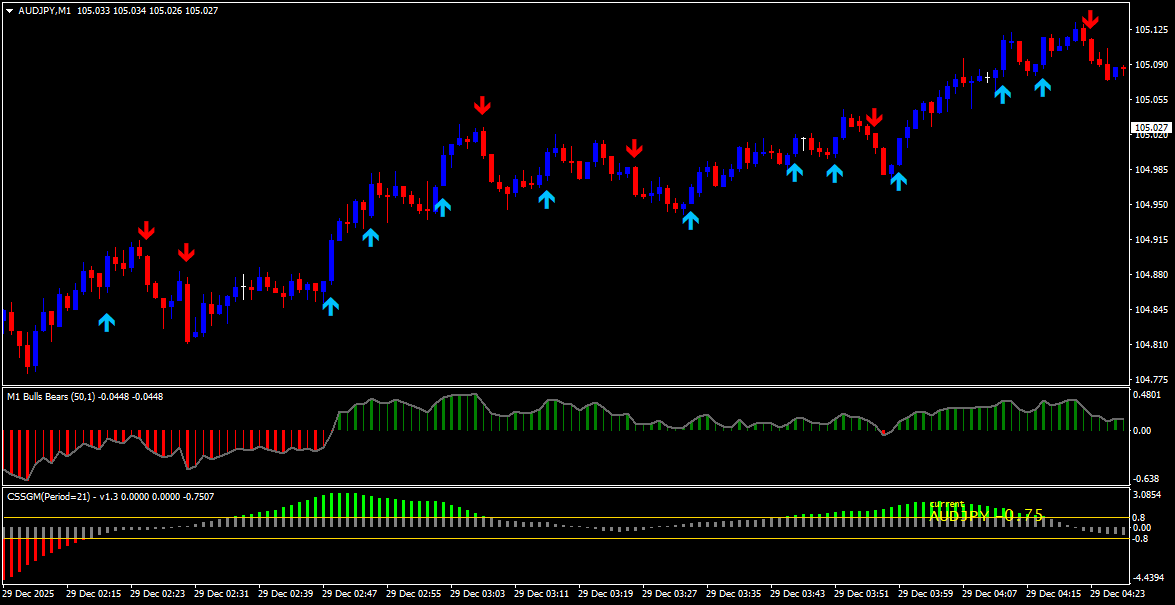 上記のチャートは、10万通貨でトレードした際の収益結果です。 1回のトレードにつき、+5〜15pipsの利益を何度も積み重ねています。 本手法は、1分足・5分足をはじめ、あらゆる時間足でトレード可能です。 上位足になるほどエントリー回数は減りますが、それでも1日数時間のトレードで+50〜80pips程度を狙える戦略となっています。 先ほども述べましたが、エントリー後は+5〜15pipsに到達した時点で、ルール通りに決済します。 決済方法は、成行・指値のどちらでも問題ありません。 常に+5〜15pipsを目標とすることで、 ・利益の深追い ・取り損ね を防ぐことができ、明確な利益目標を持ったトレードが可能になります。 また、損切りも▲5〜15pipsで確実に実行するため、 結果として大きな損失を回避でき、安定した収益につながります。 さらに、エントリーは矢印のサインツールと複数のインジケーターを組み合わせることで、 決済ポイントが非常に分かりやすくなり、明確なトレード根拠を持つことができます。 高い勝率で、相場はサインの示す方向へ動くケースが多く、 確実に決済できるため、安定した収益が期待できます。 この手法をマスターすれば、専業トレーダーを目指すことも十分可能です! 【トレードルール】 本手法は、トレンドフォロー型を基本としたトレードルールです。 トレンドの強さや勢いを判断し、レンジ相場を回避するためのインジケーターを使用します。 メインとなる指標は、矢印サインツールを使用しますが、ローソク足の過去本数と上昇値・下降値をもとに独自の形状で形成されます。 これにより、トレンド相場とレンジ相場を的確に判断することが可能です。 また、サブチャートには通貨ペアのマルチタイムフレームを含めて、上昇・下落トレンドやレンジ相場が分析できます。 このツールを使えば、「相場が強いのか」「相場が弱いのか」といった相場状況を一目で把握できます。 さらに、このインジケーターは完全オリジナル設計で、過去と現在の形状を「本数」で分析するため、ローソク足確定後リペイントの心配がなく、信頼性の高いツールとなっています。 実際のエントリーは、矢印サインツールを使用します。 これらはピンポイントで表示されるため、安心してエントリーできます。 決済ポイントは毎回+5〜15pipsと明確で、 利確・損切りの判断に迷うことはありません。 為替相場において5〜15pipsは、統計的にも最も効率よく獲得しやすい値幅とされています。 そのため、非常にシンプルで安定したトレードが可能です。 【ロジックについて】 「ZEUSのFXロジック」では何よりもトレードルールが中核になりますが、 エントリーや決済の材料として、サインツールやトレンドの分析ツールも使用します。 その特徴を解説します。 ■矢印サインツール 矢印サインツールには、高性能なロジックを採用して設計しています。 そのため、高精度なエントリー判断が可能となっています。 一般的な矢印型のサインツールは、 サインの発生回数を増やすほどエントリー精度が下がり、 逆に発生回数を減らすと精度は上がるものの、チャンスが極端に少なくなりがちです。 本手法の最大のポイントは、毎回5〜15pipsの利益で堅実に決済することにあります。 だからこそ、エントリーはピンポイントで行えるよう工夫しています。 さらに、サブチャートのツールを併用することで、 より積極的かつ迷いのないエントリーが可能です。 エントリー回数は、多すぎず・少なすぎない絶妙なバランスで設計しており、 スキャルピングからデイトレードまで対応できる仕様となっています。 まさに、実践的でエントリーに最適化されたツールに仕上がっています。 ■補助分析ツール サインツール単体では、大きなトレンドを読み取ることが苦手な場合があります。 そのため、本手法では補助として相場分析ツールを組み合わせて使用します。 このインジケーターは、現在の為替相場において、 上昇・下落トレンド・レンジ相場を分析する高性能なツールです。 一般的な補助分析インジケーターは、 リペイントが発生しやすく、信頼性に欠けるものも少なくありません。 しかし、本通貨分析ツールは、一度確定した表示が後から変化することがなく、 安心して相場分析に活用することができます。 ■その他ツール さらに、トレンドの強さや勢いをより正確に分析するため、相場の強さを数値化したものを組み合わせて使用しています。 本手法は、トレンドフォローによる順張りトレードを継続することを目的としており、 その一方で、レンジ相場を回避し、効率よく利益を積み重ねるために、トレンド分析ツールが重要な役割を果たします。 「ZEUSのFXロジック」を活用することで、 月収100万円を超えるプロトレーダーと同じ取引を、あなたも実践することができます。 そのために、あなたが行うことは―― たった3つのステップだけです。 「ZEUSのFXロジック」を設置したら、まずはチャー