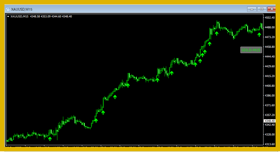 A. GOLD(XAUUSD等)の15分足(M15)に特化した、矢印サイン型のインジケーターです。