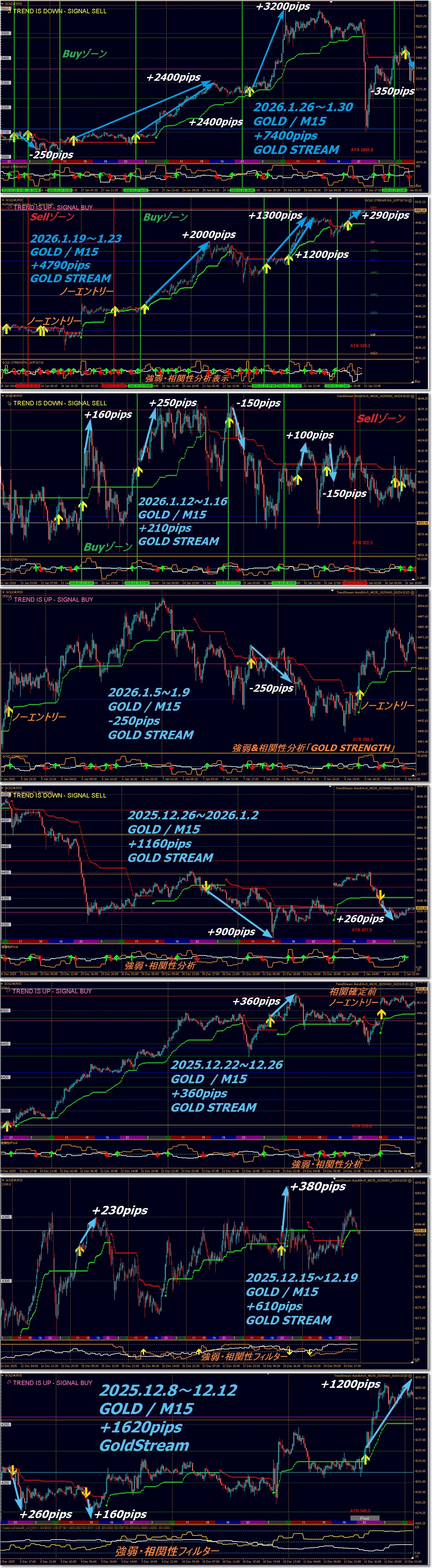 GOLD STREAM は、GOLD特有の値動きと相関構造を前提に設計されており、