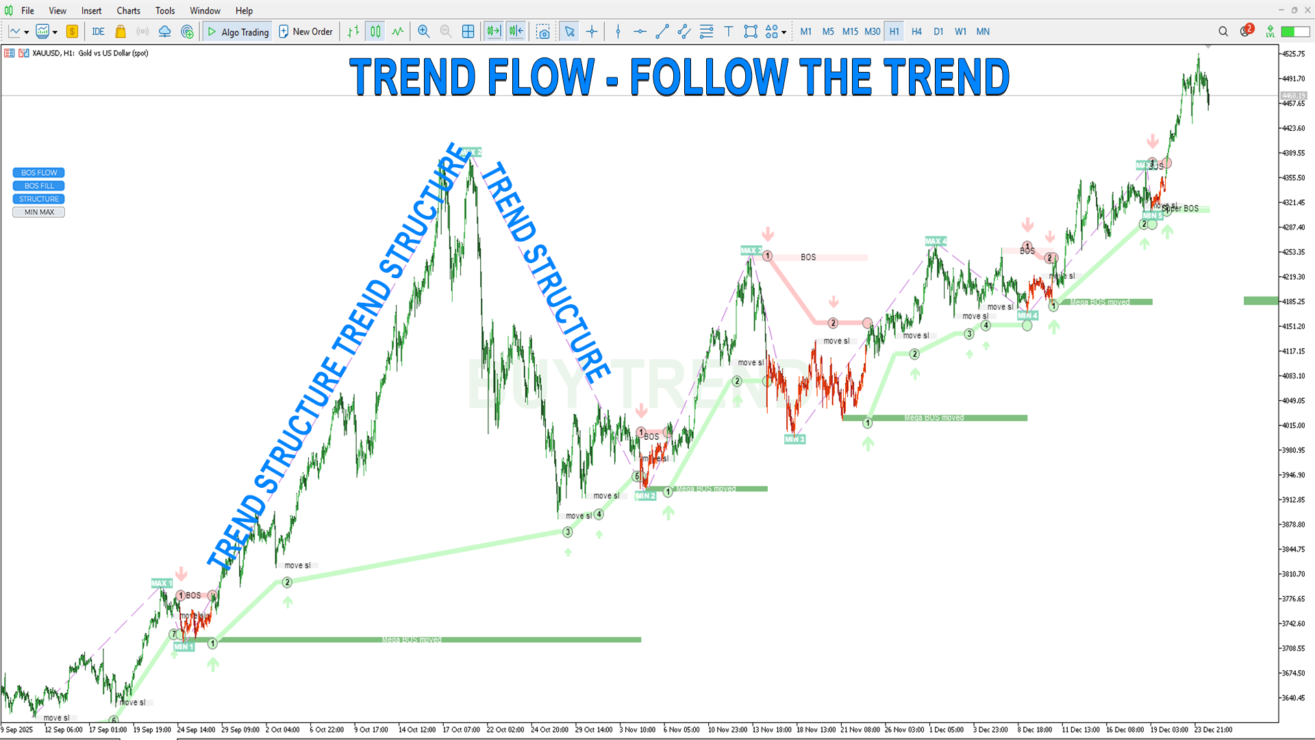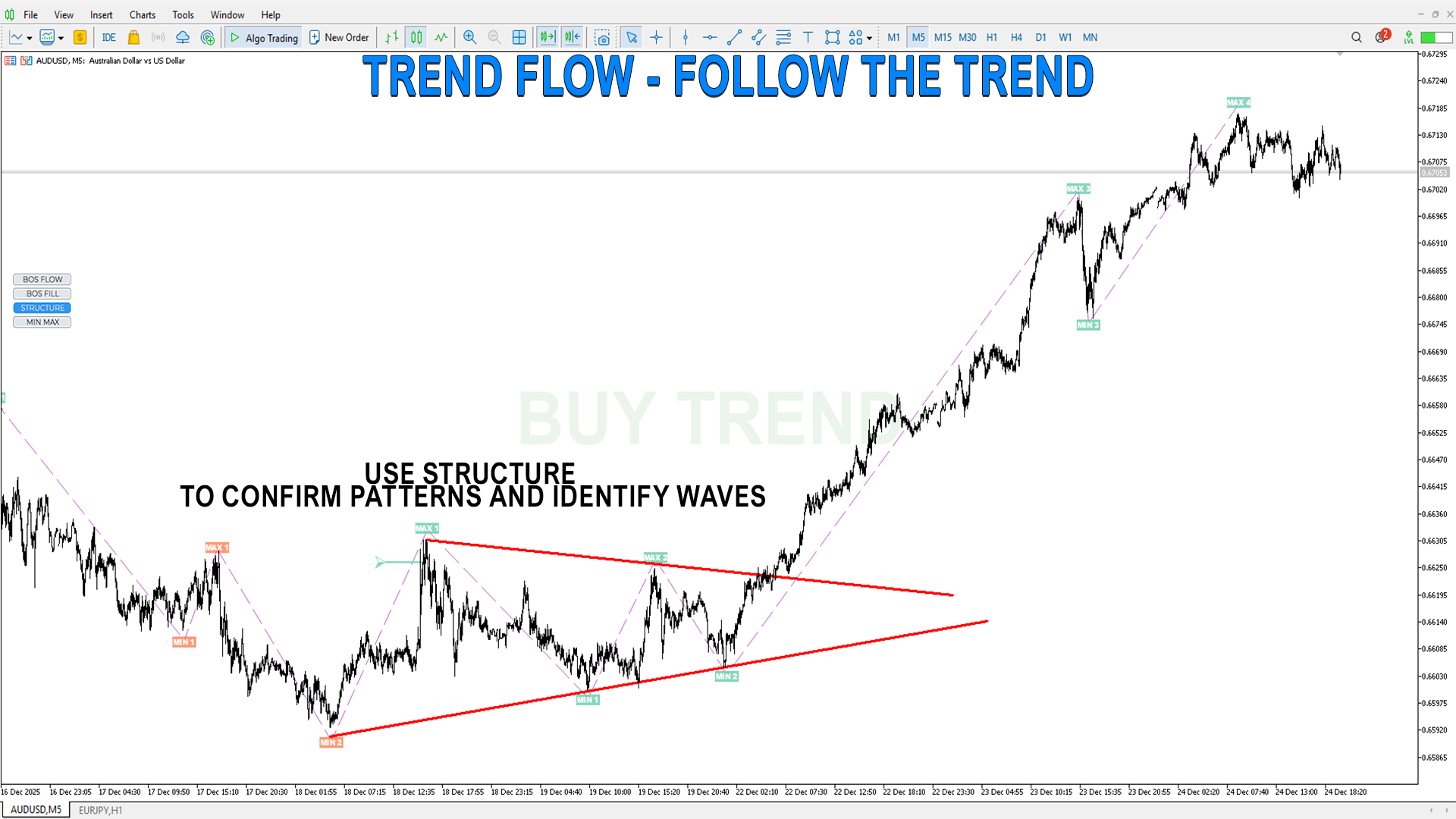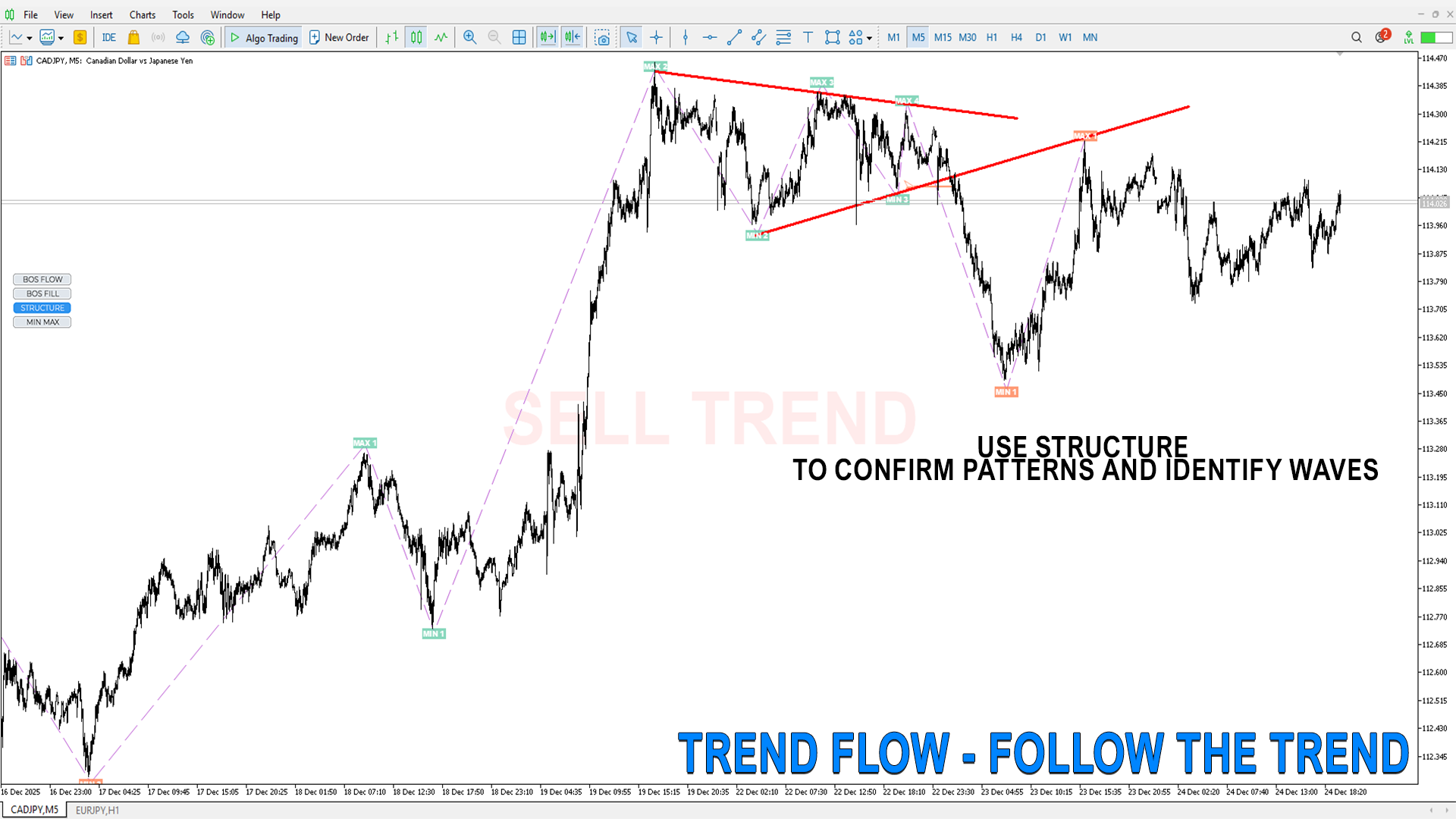 MIN MAX– サブ構造、すべての市場参加者のエントリーをフィルタリングせず表示し、トレンドの動きを詳細化するのに有用です。