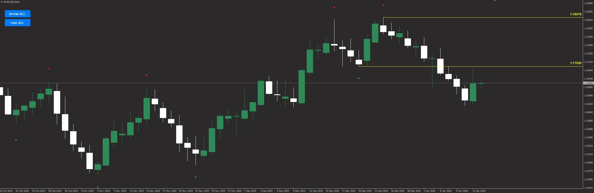 A. いいえ、リペイントは一切しません。本ツールはローソク足の「終値確定」をもって厳格に判定を行います。一度チャート上に描画された矢印やラインの位置が、後からずれたり消えたりすることはありませんので、過去検証にも安心してお使いいただけます。