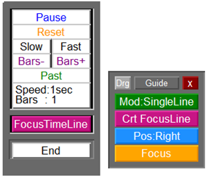 | [Reset] | 移動速度・ローソク足シフト量リセット | Speed:1s, Bar:1 にリセット |