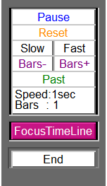 | [Reset] | 移動速度・ローソク足シフト量リセット | Speed:1s, Bar:1 にリセット |