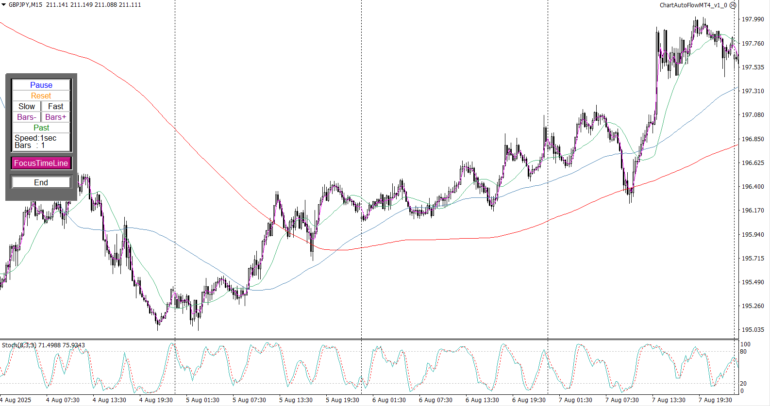 Chart Auto Flowは、過去のチャートを速度可変でローソク足単位で再生・逆再生できる検証支援ツールです。