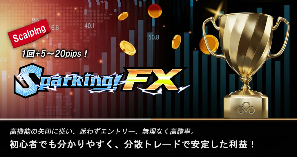 高機能の矢印に従い、迷わずエントリー、無理なく高勝率。初心者でも分かりやすく、分散トレードで安定した利益を目指すSparking!FX。