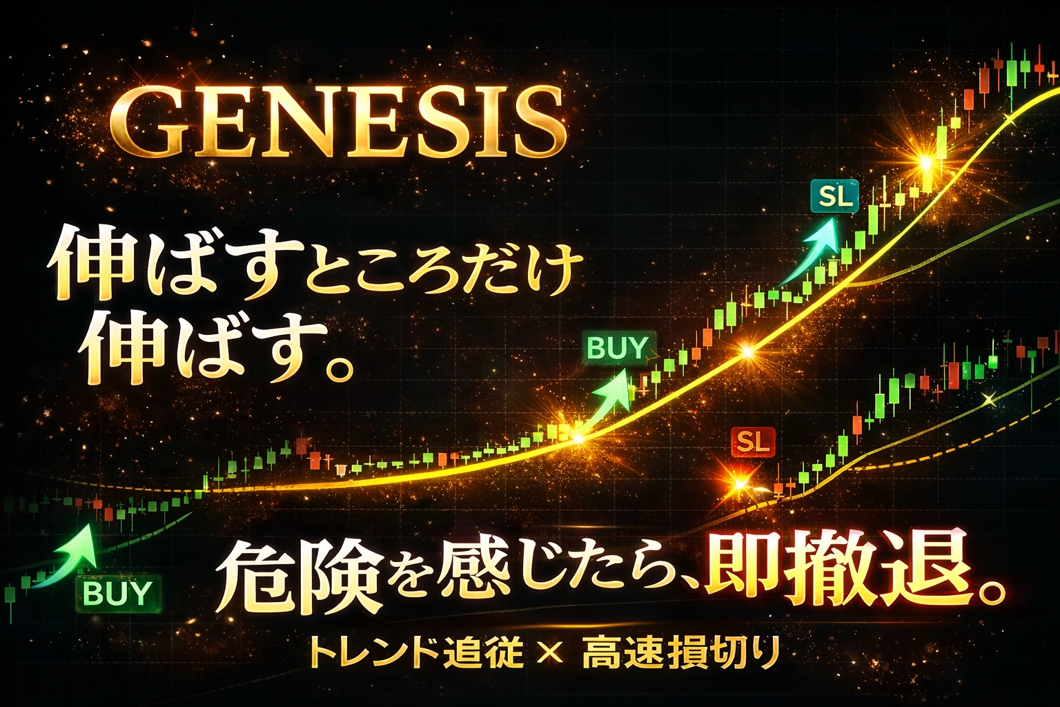 GENESISは「伸ばすところだけ伸ばし、危険を感じたら即撤退」を仕組みで実現するトレンド追従インジケーターです。