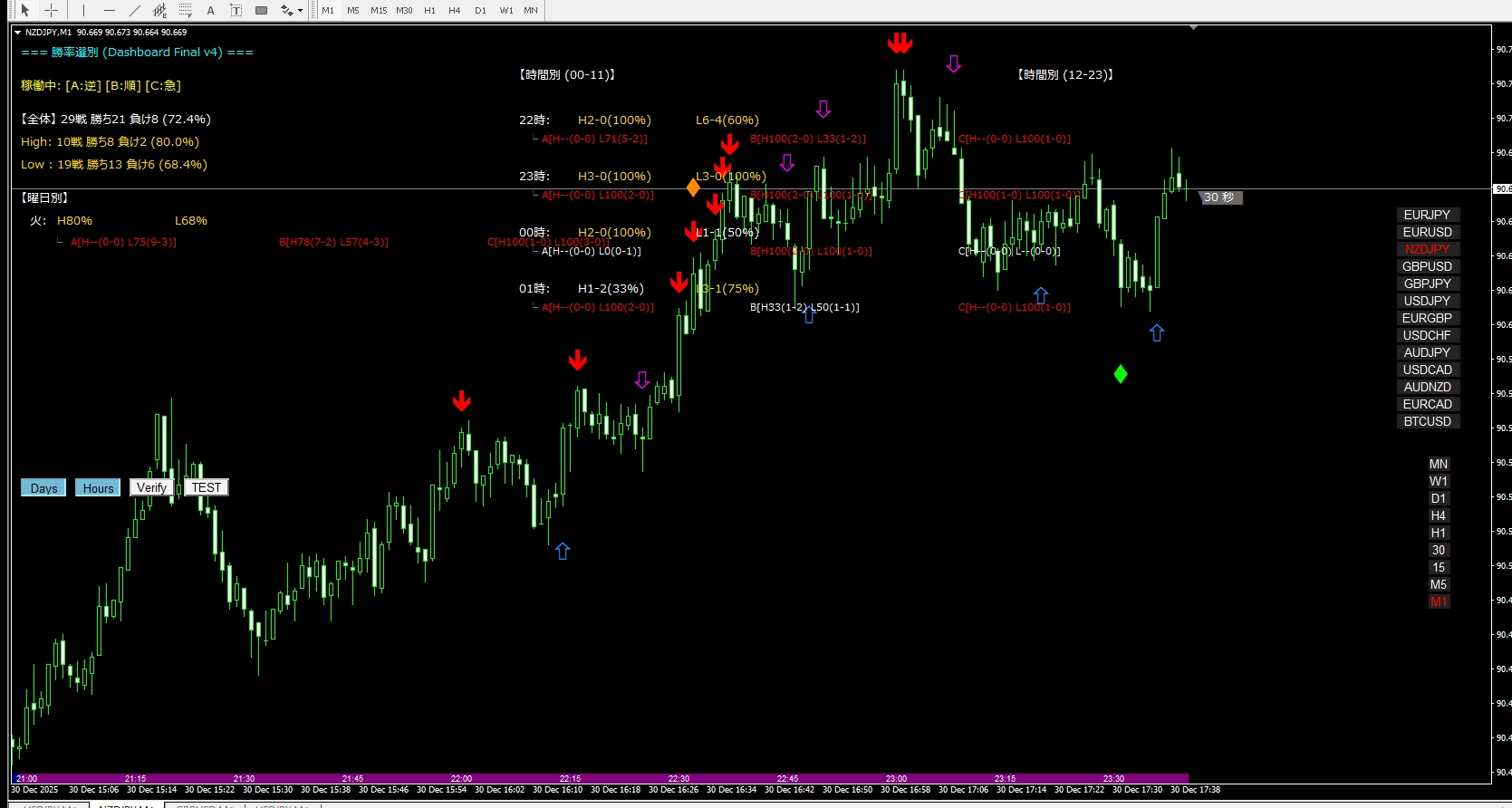 特定の時間足・特定の通貨ペアに依存しない設計だからこそ、