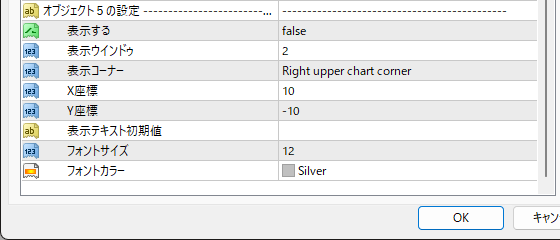 (オブジェクト1~5、同パラメーター)