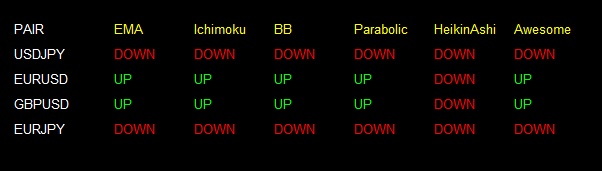 - パーフェクトオーダーの確認: 横一列がすべて「UP」または「DOWN」で揃った時は、極めて強いトレンドが発生しています。