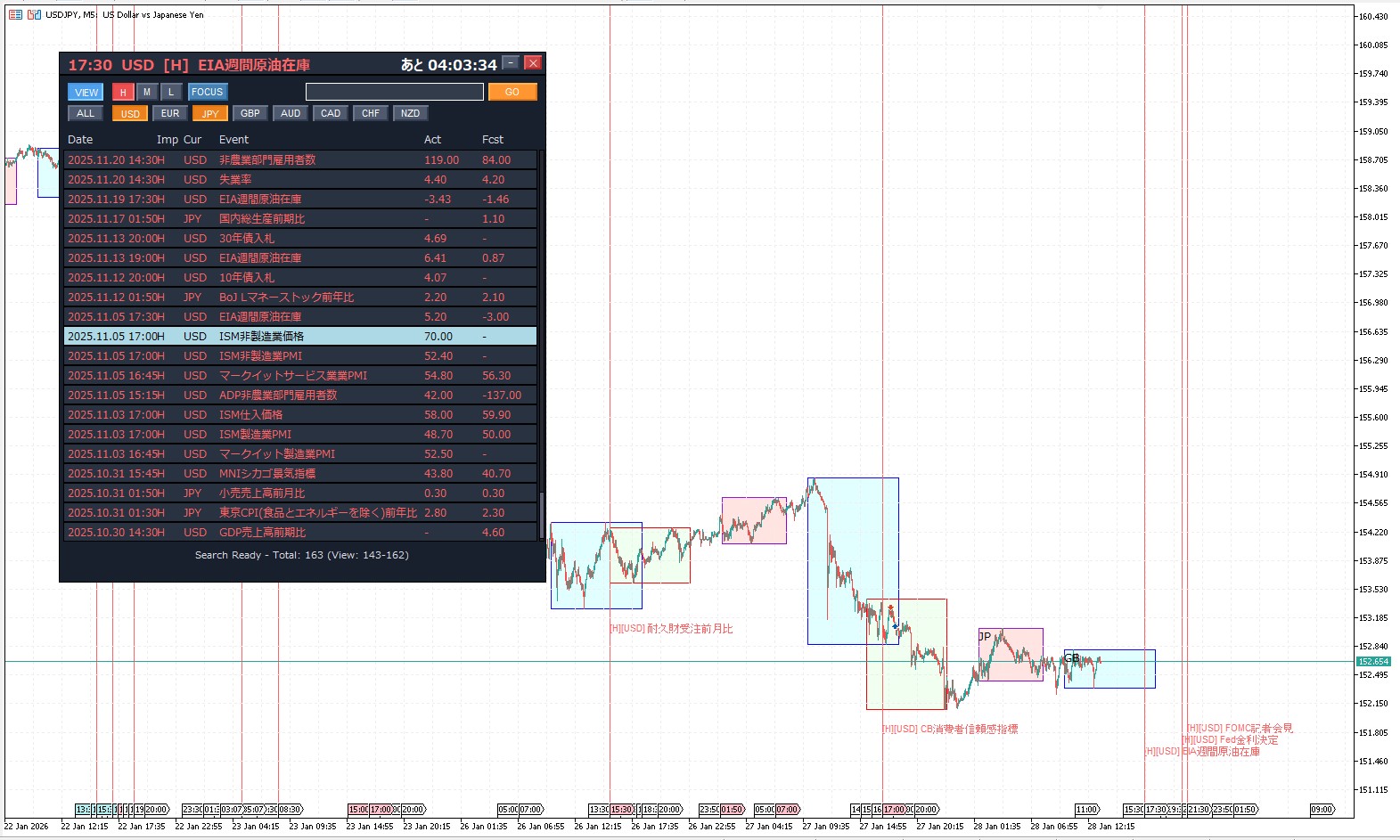 ※別途、経済指標をチャートに表示する、『SmartCalendar_HistoryViewer』も公開しています。