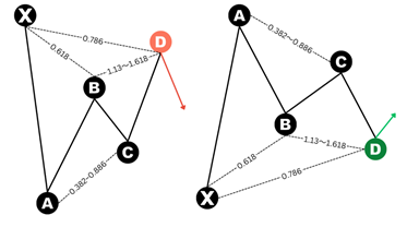 GartleyよりもB点の戻りが浅く、その分D点が深く(X点近くまで)戻るパターンです。