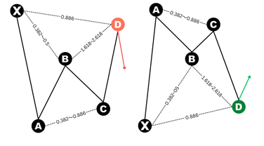 - 三角形: X-A-B(始動部)と B-C-D(完成部)の2つの三角形。