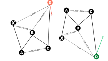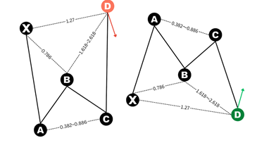 - D点: XAの 161.8%(X点を大きく超えた位置)が目標。