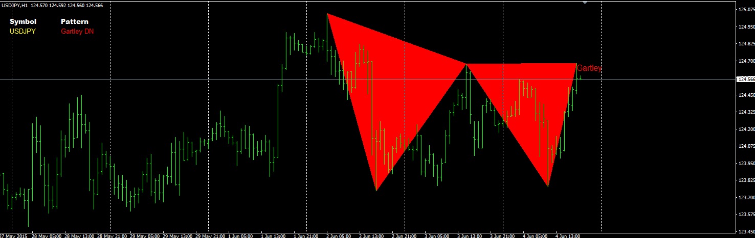 - Pattern: 検出されたパターン名と方向(例: Gartley UP, Bat DN)