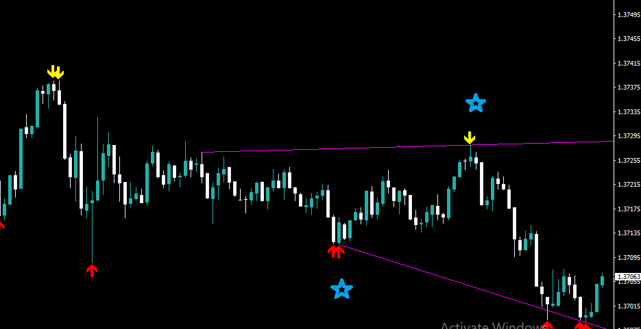 チャート上に、2本のラインを自動で描写可能なトレンドライン自動描写インジケーター。NODE HUNTERのエントリーサインを組み合わせると効果的です。