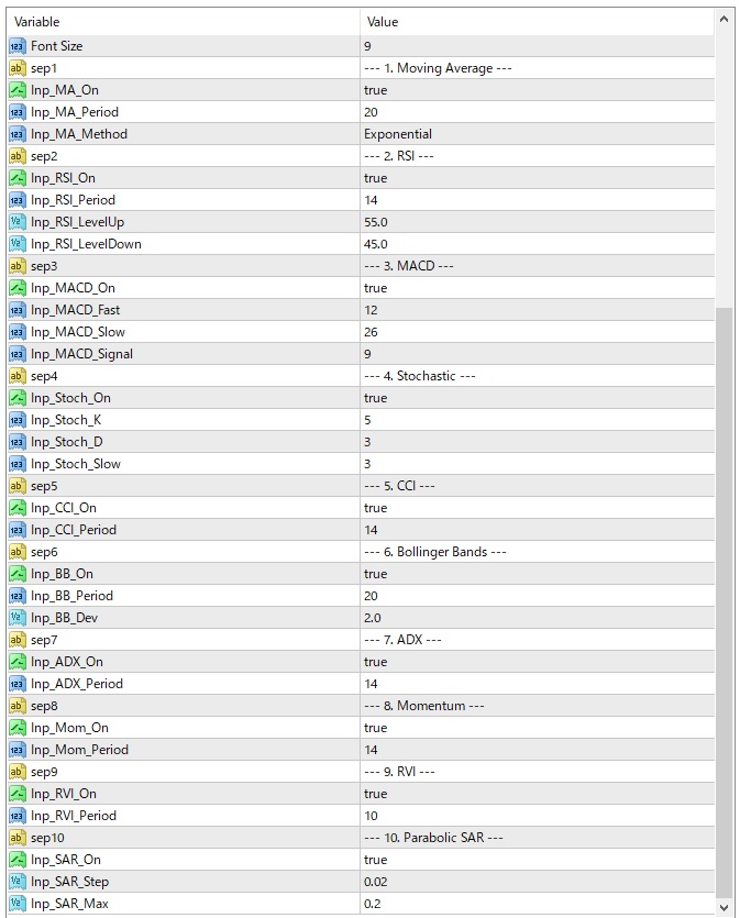 - Inp_TextColor: パネルの文字色。背景が白い場合は Black に変更してください。