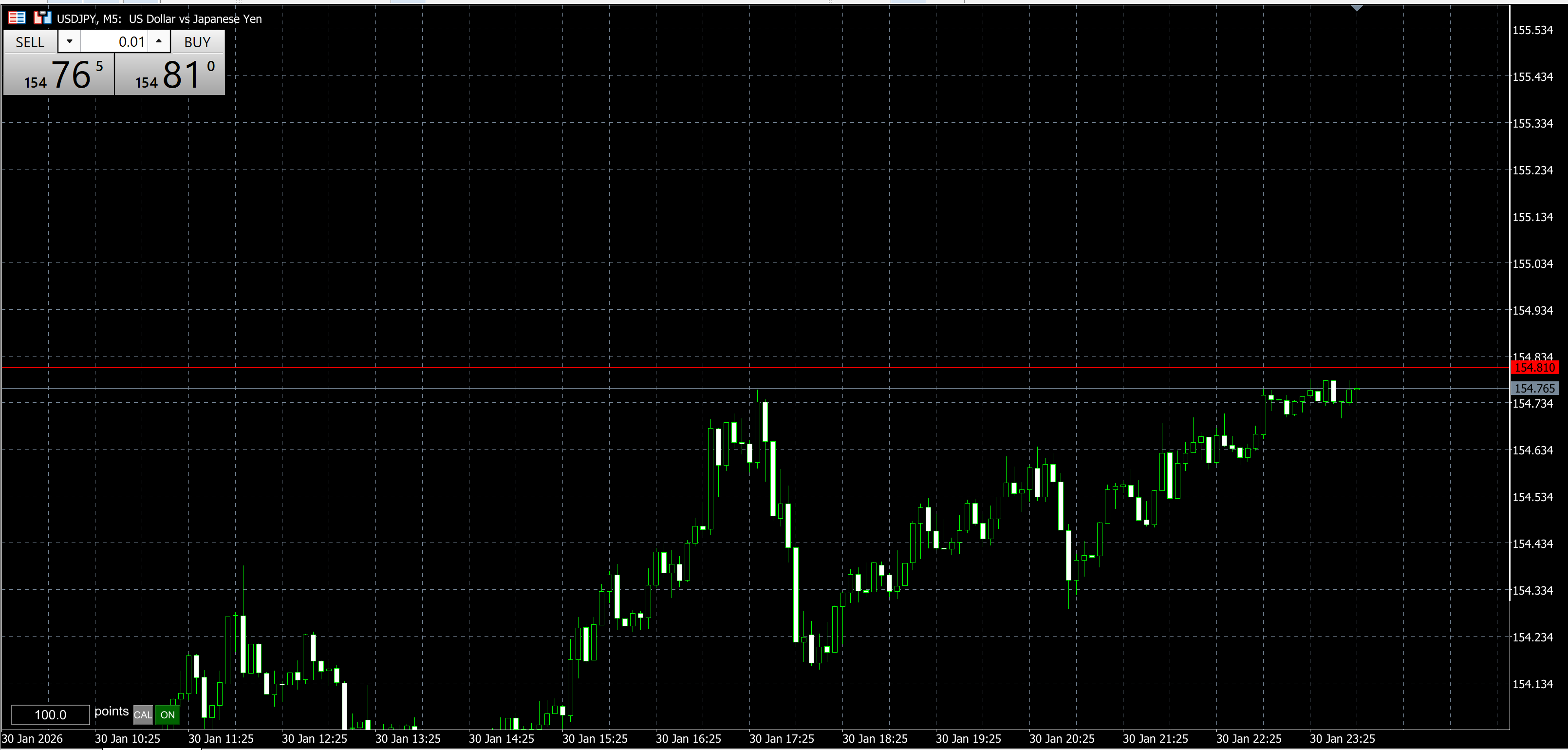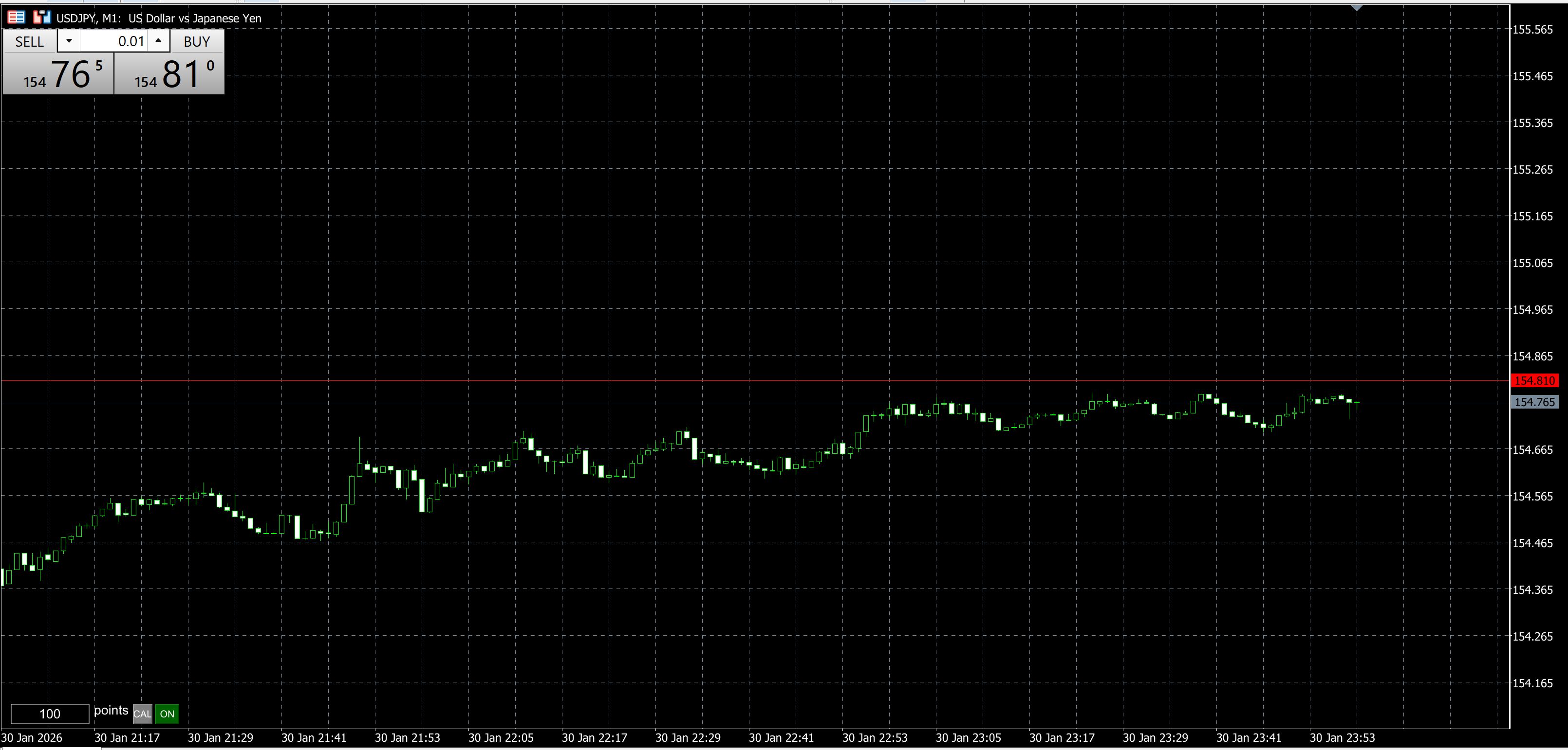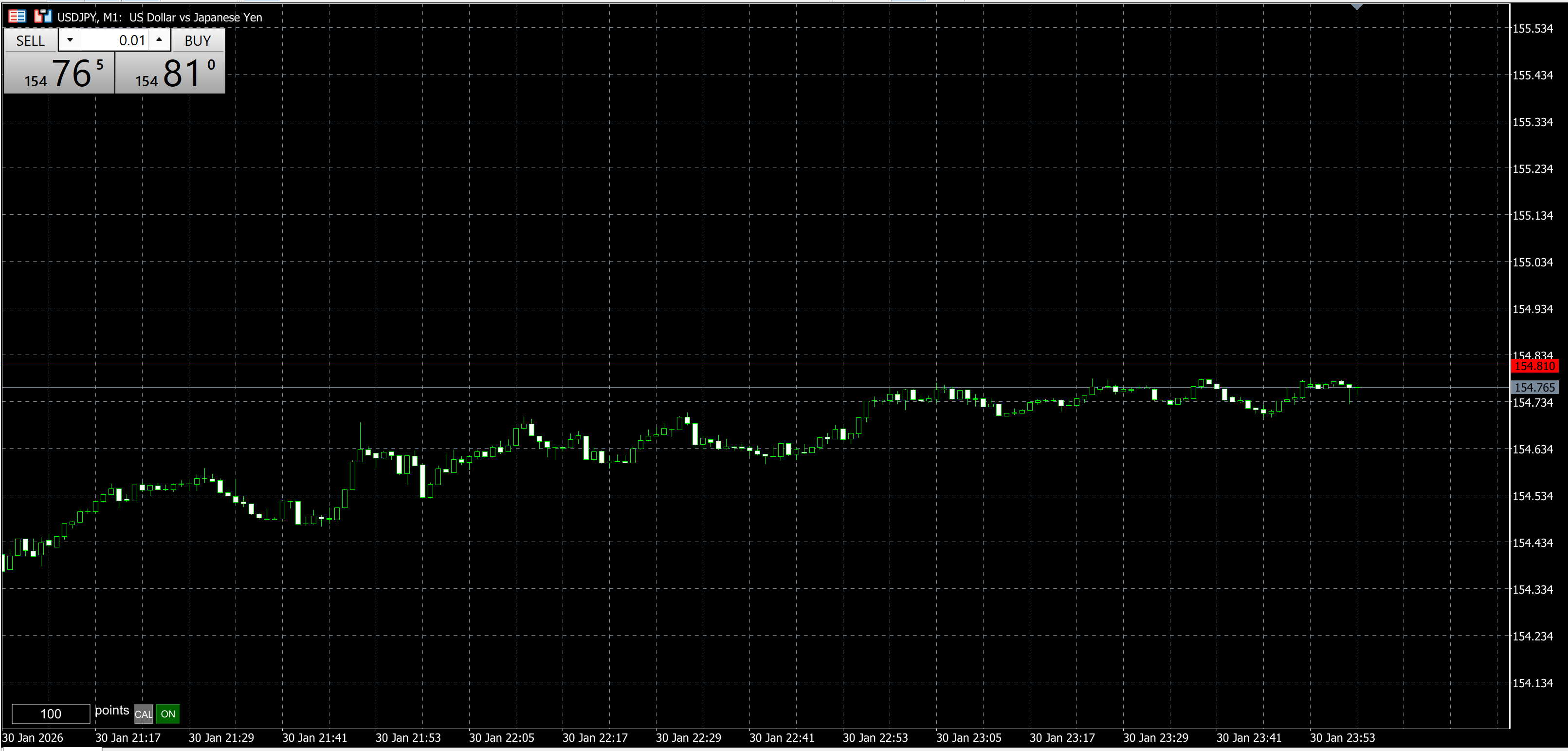 BID価格の154.765円に合わせてみました