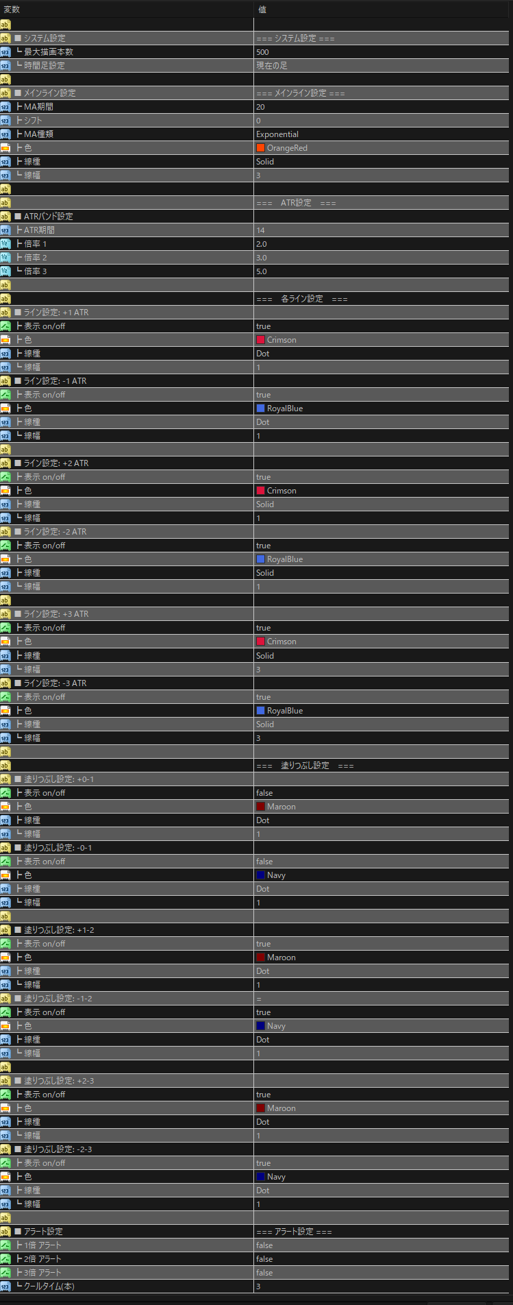 メインラインは期間、シフト、MA種類(SMA,EMA,SMMA,LWMA)を変更可能。