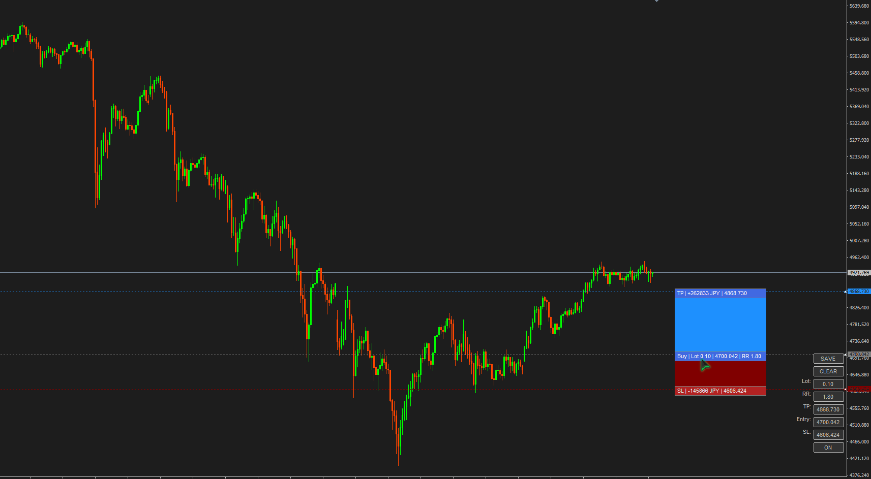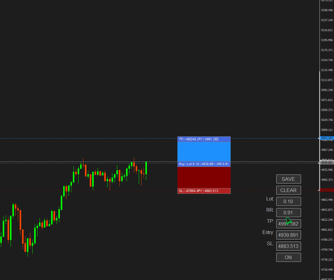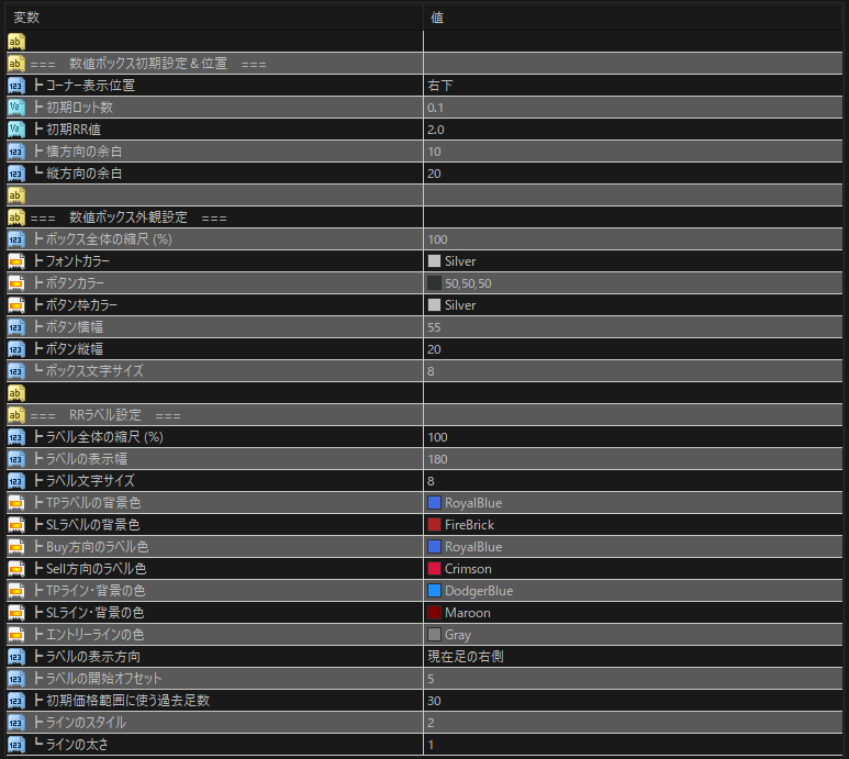 RR値、価格を入力してTP、Entry、SL各ラインを移動させることもできます。