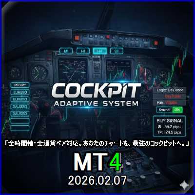 マウス移動を最小限に抑える効率的なUIと、相場環境(時間軸・通貨ペア)に合わせてロジックを自動最適化する「Adaptive System」を搭載しています。