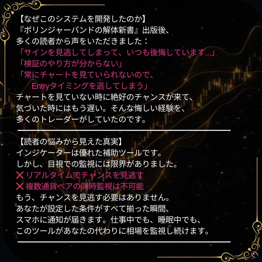 「Entryに自信が無い…」 「チャートを見ていられない…」 「オリジナル手法を考案したい!」