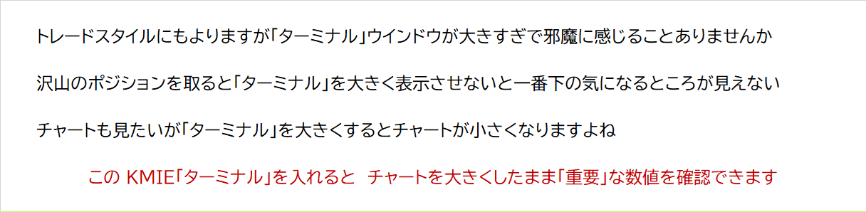 ワンクリックで画面スッキリ「トレードに集中!」大きなターミナルパネルを簡易画面へ切り替える