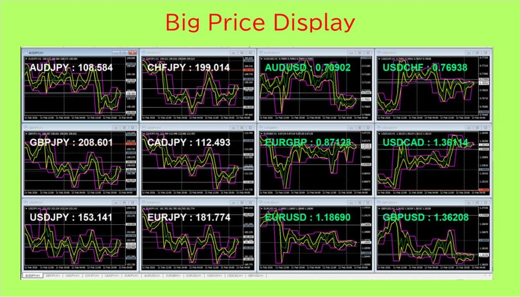 レートを大きく表示 複数チャートを同時監視する際には特に見やすくなります