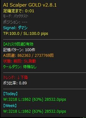パネルのAI回避カウンターが増えていくのを見て、 「今日はこういう相場か。AIが止めてるってことは、 この形は今日は危ないんだな」 と、自分でも相場の癖を読めるようになってくる。
