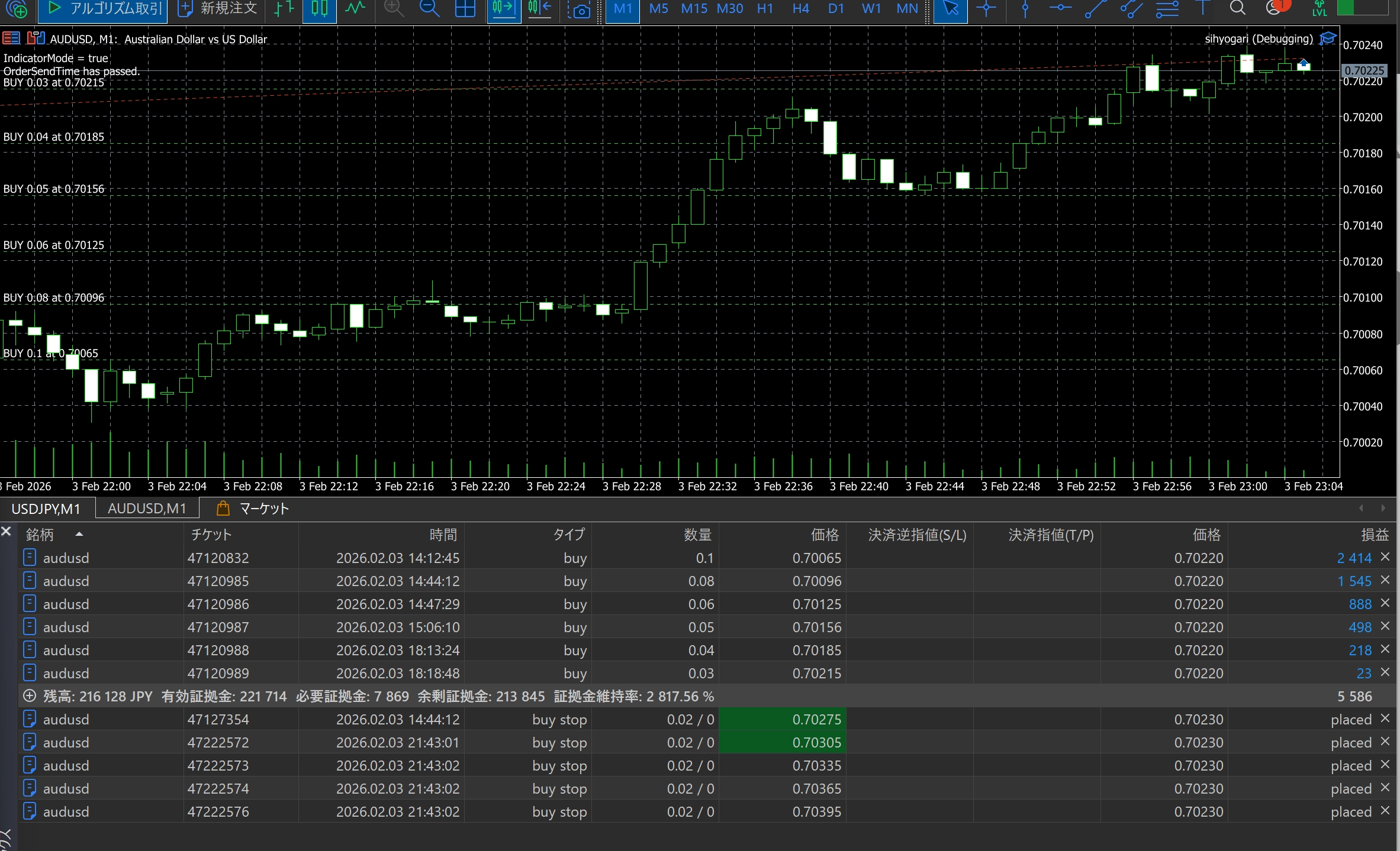 ↓↓指標がサプライズだったため値が大きく動き、ピラミッディングされ利益がみるみる大きくなります。
