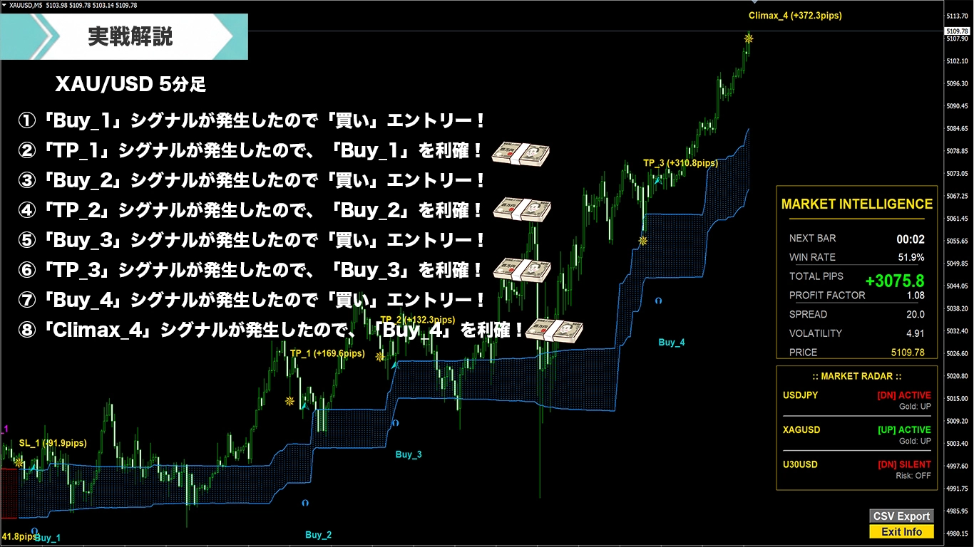 ぶち抜け!エントリーも決済もAI完全シグナル搭載!ゴールド専用ロジックの完成形!