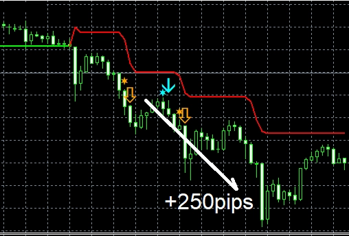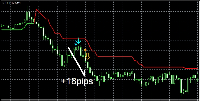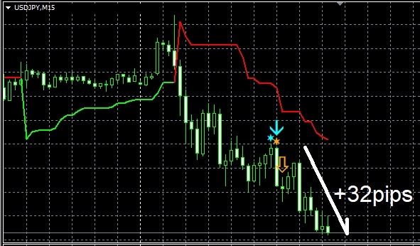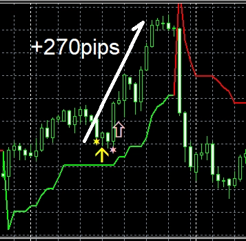 50のPDF(計170ページ以上,計7万文字以上,チャート数:120枚以上)で解説している手法に従い、上位足を観察し、下位足でオリジナルインジケーター【STRCI】のサインを待つ形まで持ち込む。
