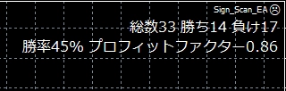 取引数・勝率・プロフィットファクターをチャート上に表示し、サインの成果を一目で把握できる