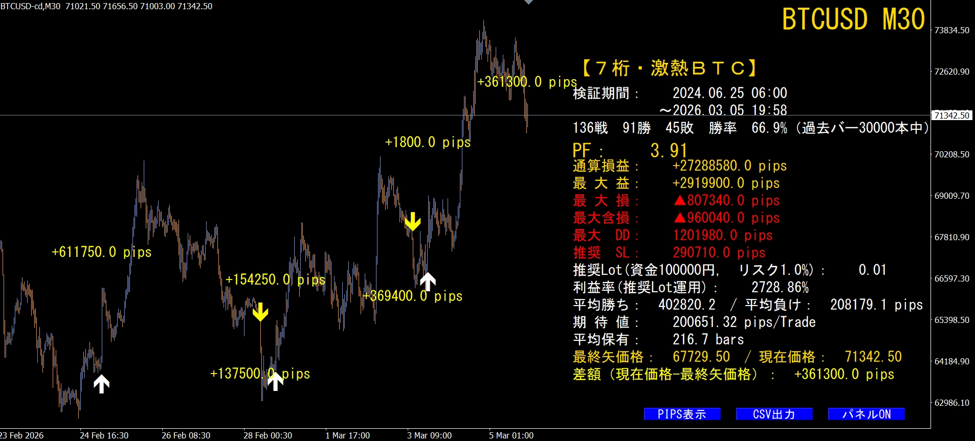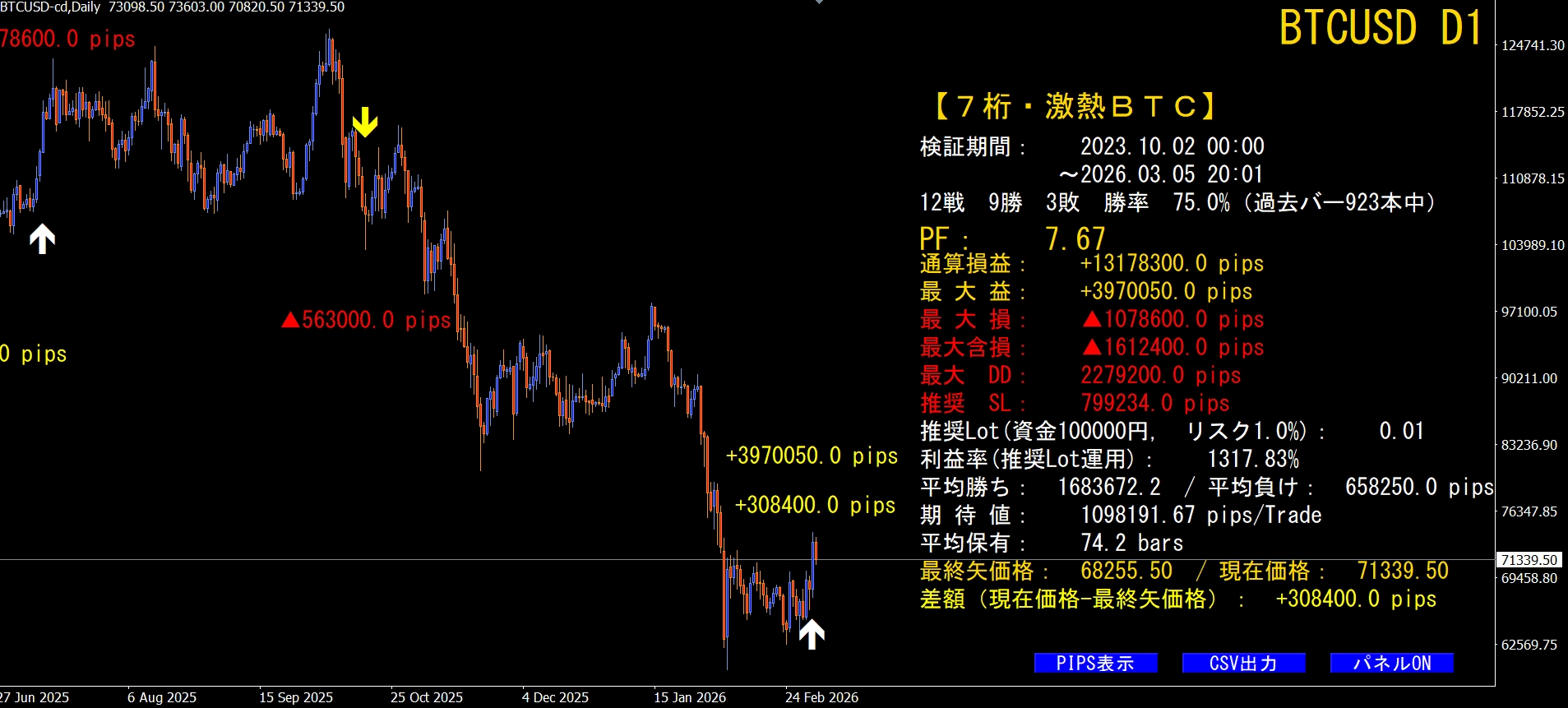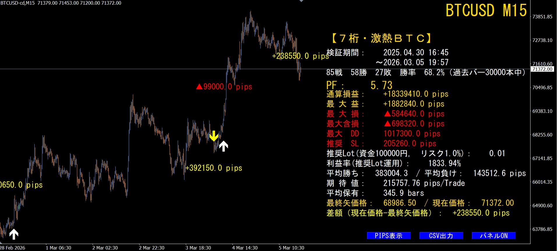 ※  BTCUSD(ビットコイン)専用システムです。
