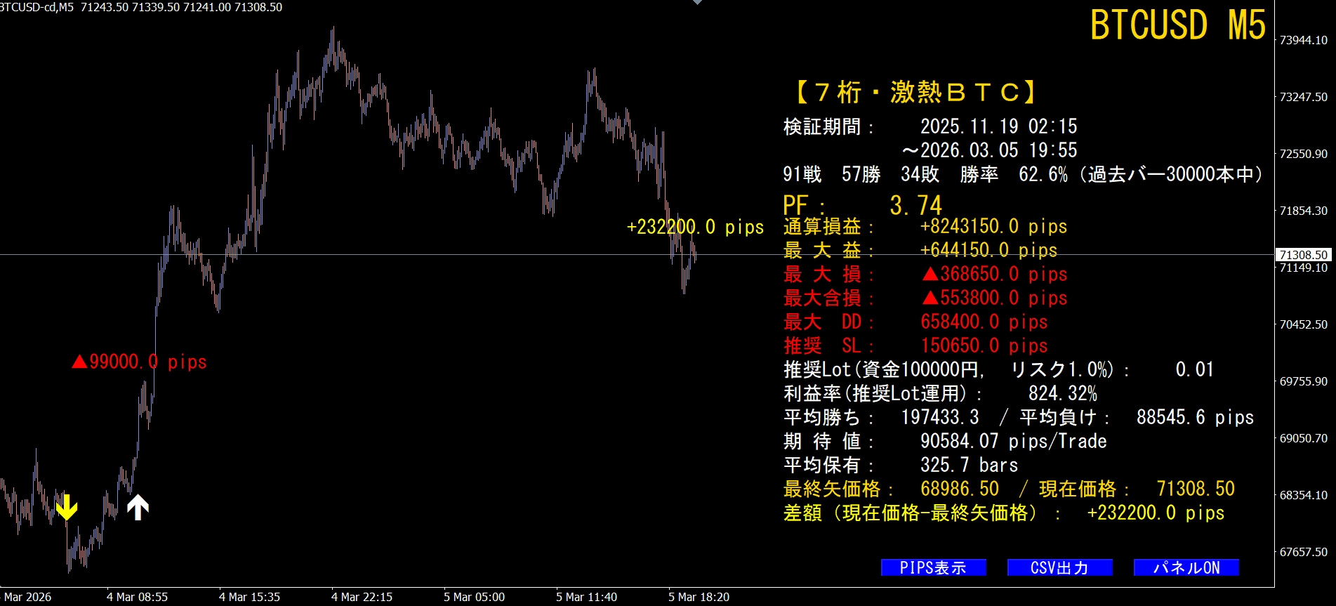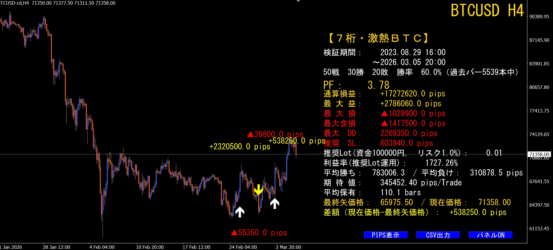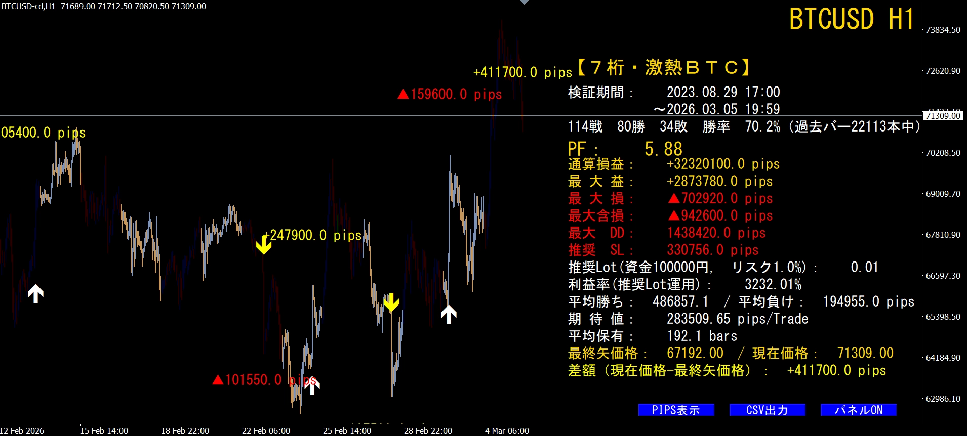 ※  BTCUSD(ビットコイン)専用システムです。